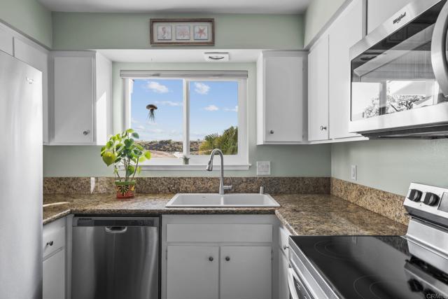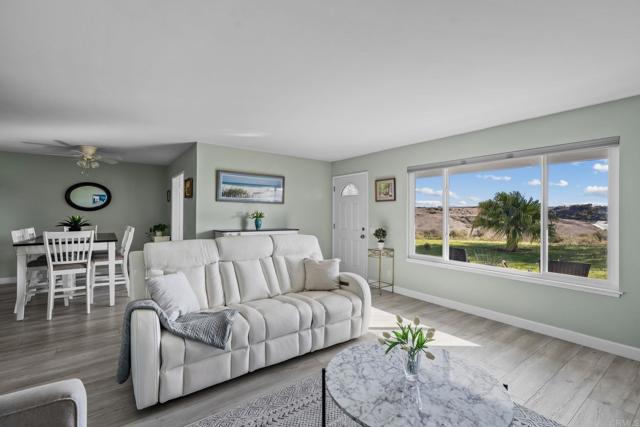 Wake up to wide open views that stretch across rolling greenbelts and catch sunsets from your living room every evening. This rare end-of-cul-de-sac location in Oceana South III offers open space on both sides, with no homes in front or behind you and the Emerald Isle Golf Course just beyond the community’s edge. It is one of the most private and scenic settings in the neighborhood, creating a peaceful, light-filled place to call home. Inside, the large picture window brings the landscape indoors and fills the living area with natural light from sunrise to sunset. The home has been thoughtfully updated with new flooring, fresh interior paint, remodeled bathrooms, modern window coverings, newer dual-pane windows, and much more. The kitchen includes granite countertops, a brand-new sink, and newer appliances. A new water heater and other recent improvements add comfort and ease. The floor plan includes a spacious main bedroom with an ensuite bath and walk-in tiled shower, plus a secondary bedroom perfect for guests or hobbies. Only four units sit on this quiet cul-de-sac, creating a low-traffic setting with additional privacy. Residents enjoy access to the community clubhouse, pool, and jacuzzi. The location is close to the beach, Emerald Isle Golf Course, shopping, and a growing mix of locally owned restaurants.