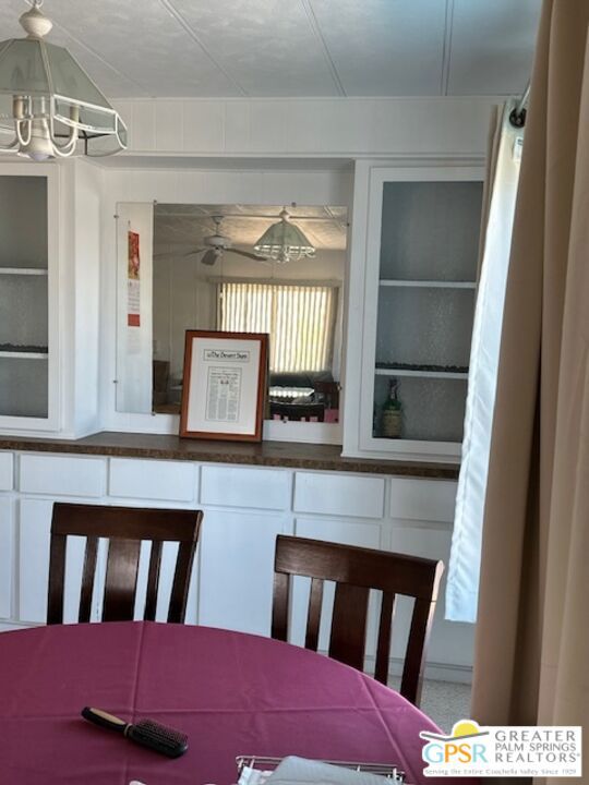 Come see this charming unit minutes away from Palm Springs in the Coachella Valley’s Vista Grande Spa . This 2 bedroom unit has a townhouse feel. With lots of closet space and 2 full bath’s. Step into the kitchen and the nice white cabinets bring in the light from the windows. This unit has large windows to accommodate an open floor plan as well as plenty of cabinet space with lots of wall space for photos. The carport has space for 2 vehicles and space enough on the patio to entertain and eat outside and take in the views of the Santa Rosa mountains. This is a great family community.