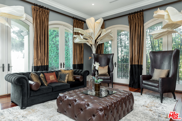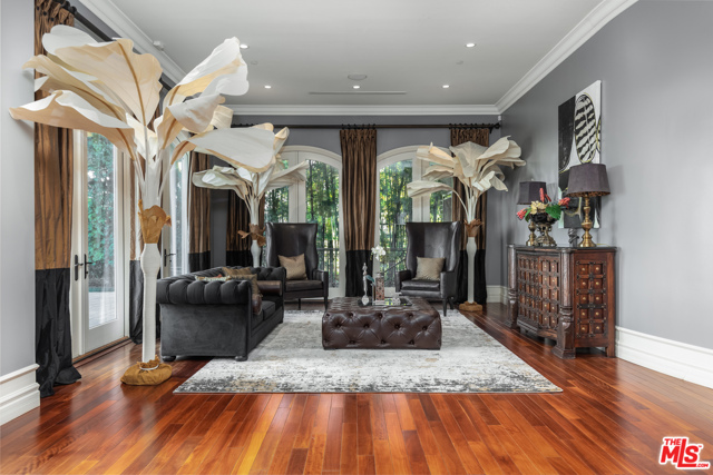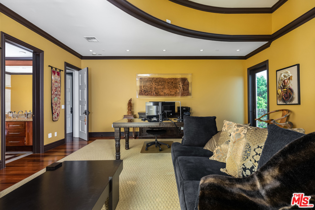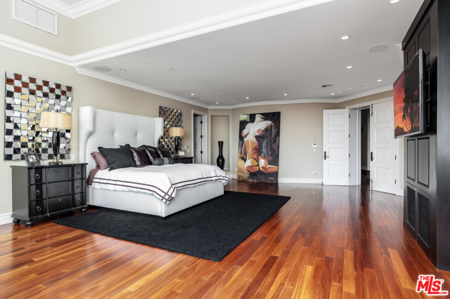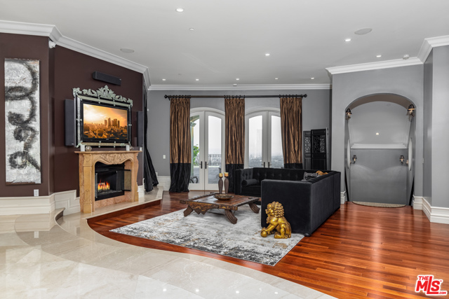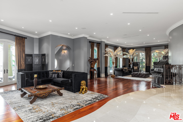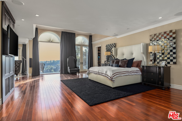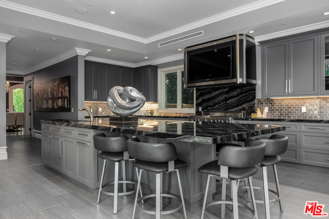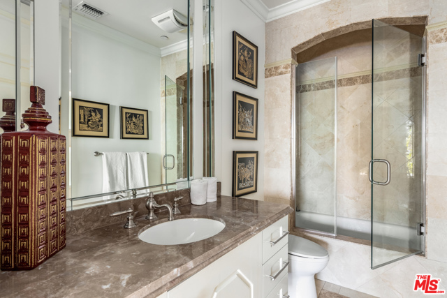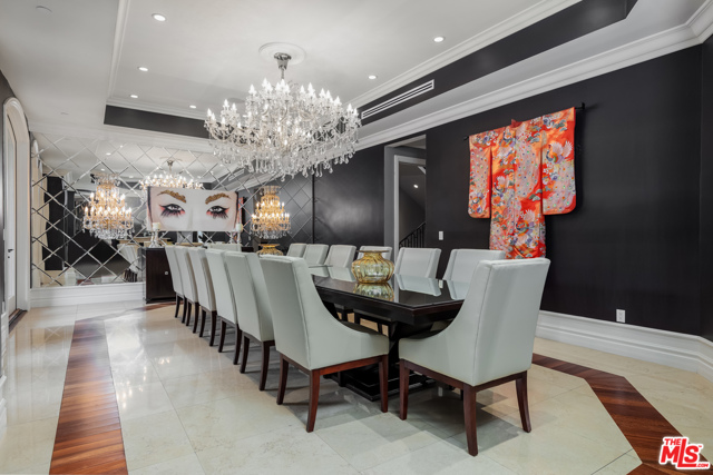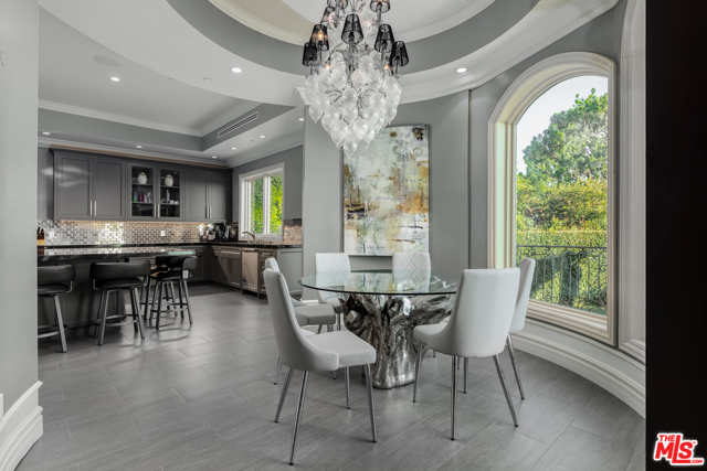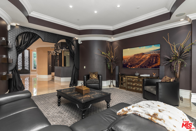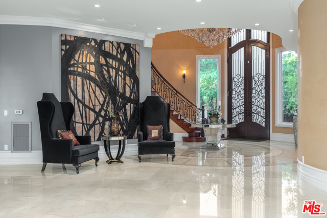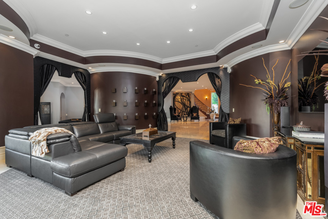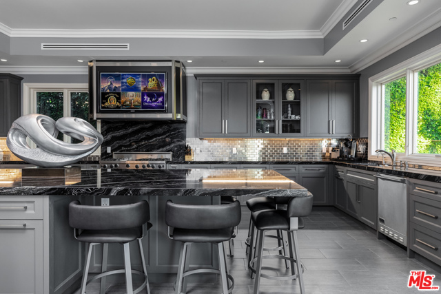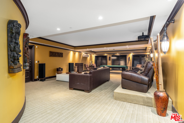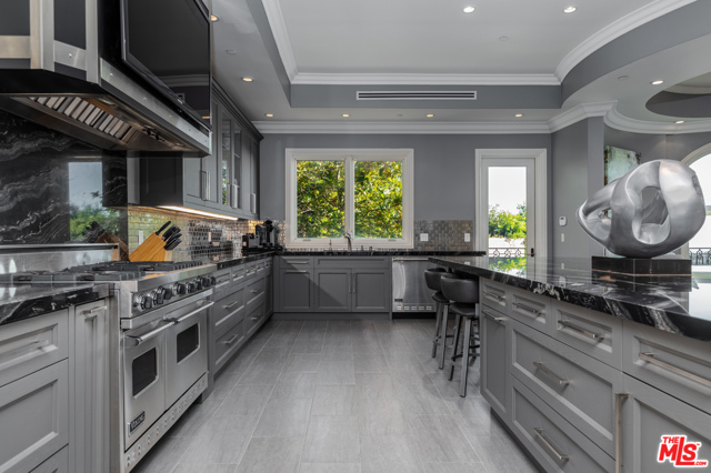 Shangri-LA was a fictional place described in the 1933 novel Lost Horizon. This beautiful Mediterranean-style villa in the heart of Beverly Hills Post Office is anything but fictional. Enter this rare offering set amidst some of the most valuable real estate in the world.This magnificent 14,000 square foot home, located at the end of a private cul-de-sac, includes an elevator, 3 gas fireplaces, 6 bedrooms with private balconies, 8 bathrooms, 2 tier deck and patio with a sparkling infinity-edged pool and jacuzzi, maids quarters, and an immaculate 5 car garage. 9914 Shangri La Dr is an entertainer’s dream, with impressive double 14′ custom wrought iron and glass entry doors opening to a grand two-story foyer and winding wood staircase trimmed with an intricate iron railing. The spacious main living area features a large wet bar central to be a free-flowing open entertainment. You are provided with a newly renovated gourmet kitchen, a gorgeous 1,500 sq.ft. Master bedroom with a luxurious en-suite bath and a plethora of space ideal for a number of occasions. The elevator will take you to all three floors, including enormous downstairs state-of-the-art entertainment rooms. The lowest level opens up to a bar, equipped with a fully functioning kitchen, home fitness center, 2.5 baths, and a laundry room, ideally suited for both guests and the foreground for maids quarters. Moreover, the subterranean parking (with the addition of the driveway and accessible street parking) supplies guests with the ability to house up to 16 cars. Available for short-term rental, this glamorous and stylish home will bring forth memories that will last you and your loved ones a lifetime. Minimum 30 day rental.