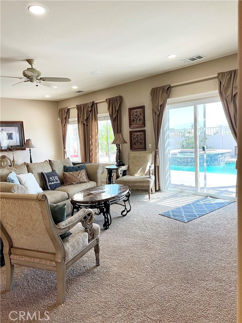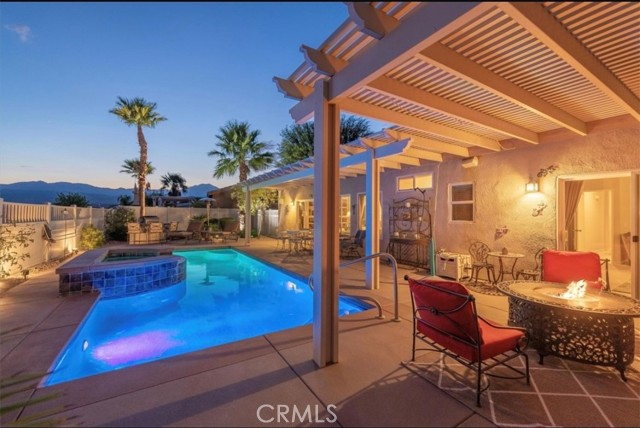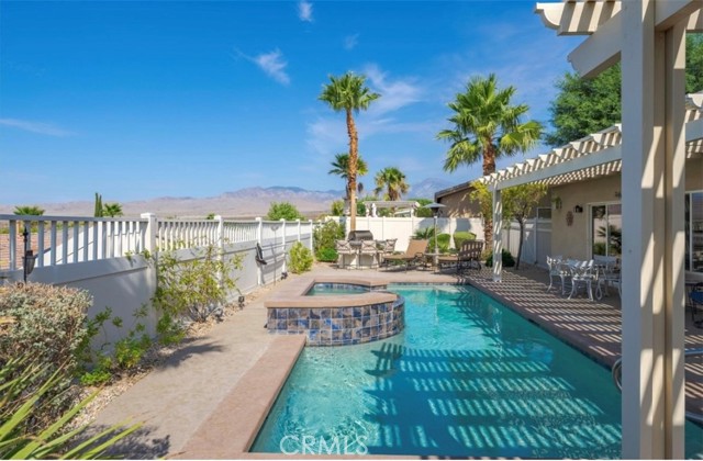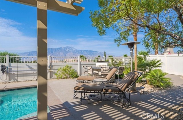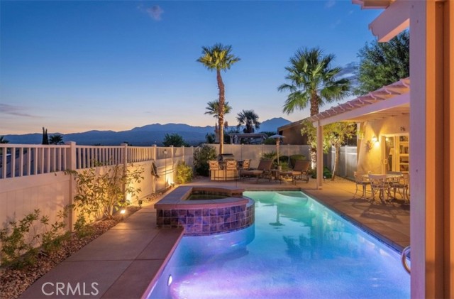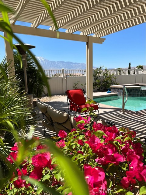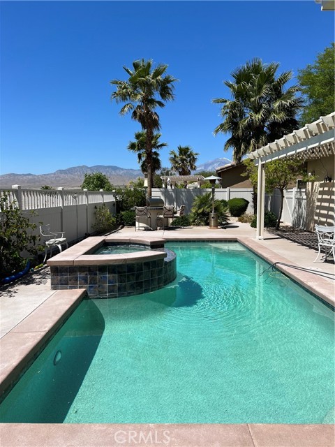 Flexible lease term. 30 days for vacation renters or up to 1 year. Welcome to our oasis in the desert. Secure and gated community. This fully furnished home has it all! 3 bed 3 full bathrooms. Heated pool & spa. 2 car garage. RV / Boat parking. Outdoor barbeque area. Patio with misters to stay cool. Amazing location with lots of amenities including community basketball court and tennis court. White House Canyon hiking trail just across the street. The property features sweeping views of snow capped San Jacinto & San Gorgonio mountains. Experience jaw dropping sunsets every night right before you enjoy the pool, amazing spa, and outdoor grill. Spacious living room and bedrooms includes a primary suite with Queen bed and a private en suite living room with access to patio & pool. Second bedroom is serene with a queen bed. Last bedroom has 2 double beds. Each bedroom has a full bathroom and all bedrooms are separated for privacy. Large living room has a smart TV. Built in speakers throughout entire house and back yard allows you to play your favorite music throughout the home and backyard. This home can be leased furnished or unfurnished.