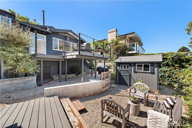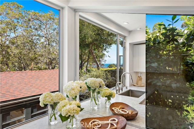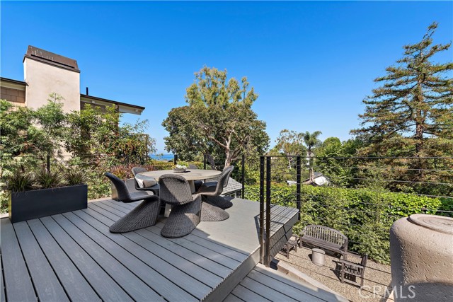 A GORGEOUSLY REMODELED DREAM VACATION HOME AWAITS MOMENTS FROM THE COAST IN HEART OF LAGUNA BEACH. Serenity and relaxation blend seamlessly in Laguna Beach’s enviable Woods Cove neighborhood at this ultra-charming, historic 1926 cottage. Ideally located with the ocean and nearby family favorite, Bluebird Canyon Park, this private and stunningly furnished residence includes 3 bedrooms and 2 baths on a beautiful corner lot complete with abundant entertaining space indoor and out, The spacious ocean view deck is complete with an outdoor dining table off the main living room. Luxury living accompanies all times of day with the recessed lighting, air conditioning, ceiling fans, Carrera marble counters, custom window treatments, top quality bedding, and multiple outdoor dining vignettes. The cozy outdoor yard is surrounded by mature shade trees, covered porches, and an outdoor dining area with bbq, built-in sun bench, multiple sitting areas, and a fun to place to play on a luxury ping-pong table. A contemporary fireplace warms the living room, which opens to both the front and rear yard spaces, dining room, and the completely updated, light-soaked chef’s kitchen with ocean view. Modernized baths showcase colorful tile, vessel sinks, a soaking tub, and an indoor/outdoor flow provide the perfect setting to enjoy this peaceful beach home. Timeless Dutch doors invite guests in with a light and bright ambiance embellished with vaulted ceilings, transom windows, skylights, white-paneled walls, fresh paint, and exquisite decor. All in all this is the dream vacation home offering a refreshing, whimsy, and an ideal location to enjoy peaceful and coastal living at its best.