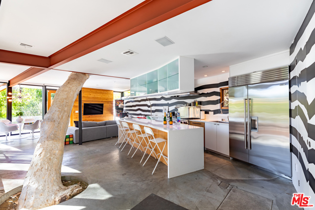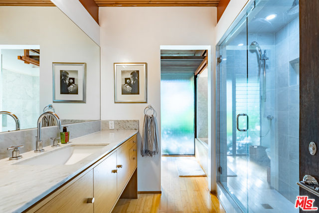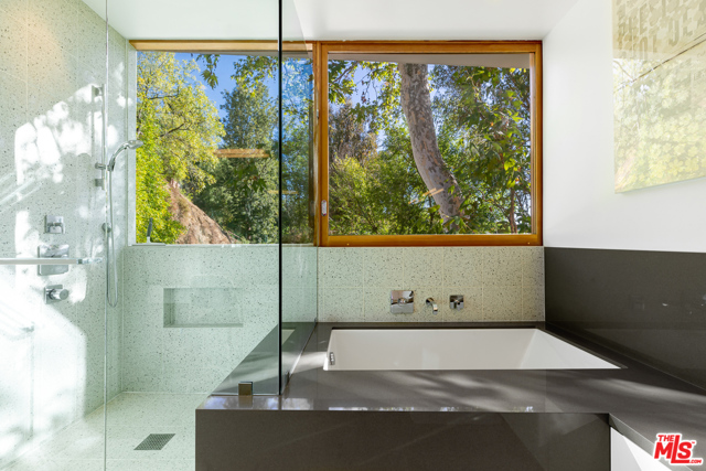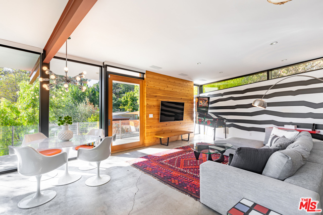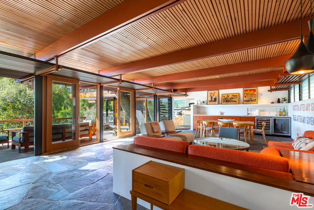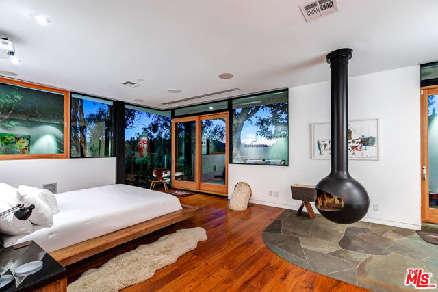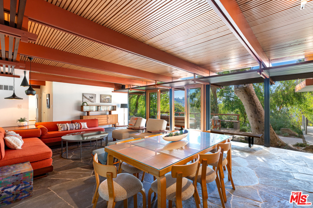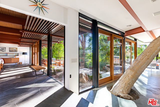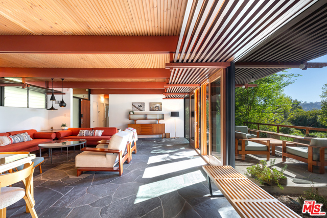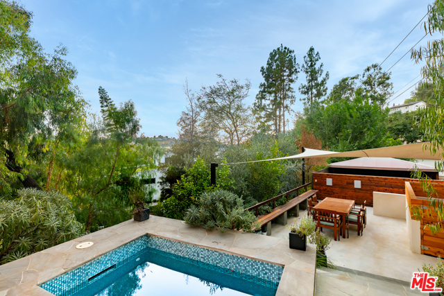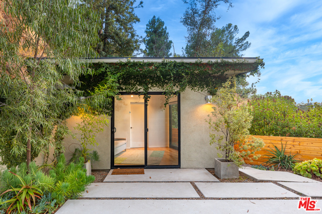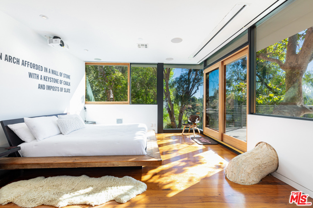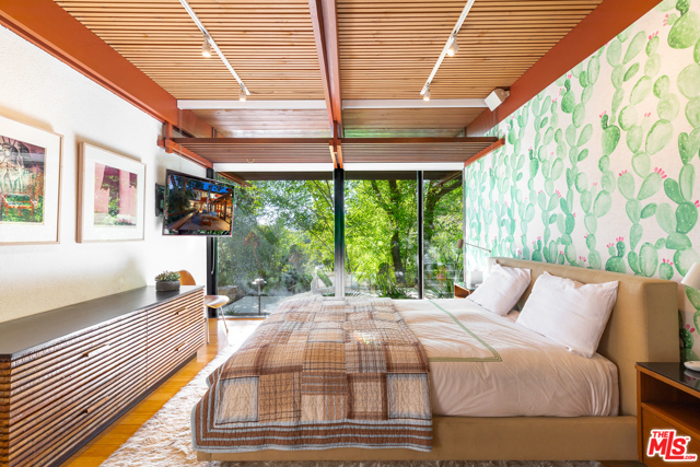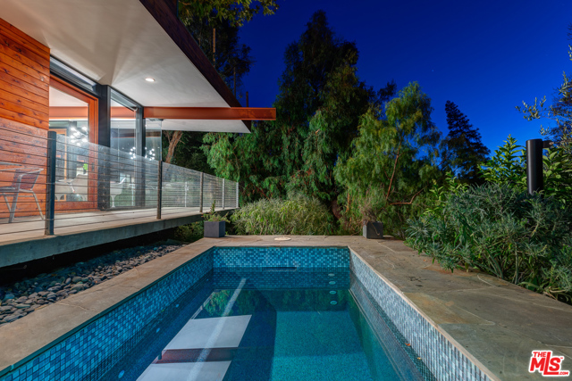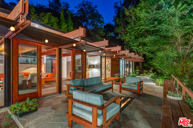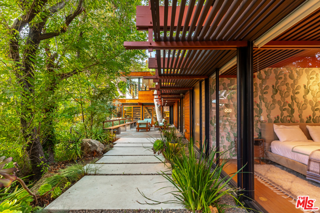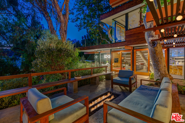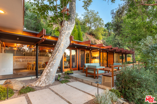 This house has been featured in The LA Times, The NY Times and Houzz TV show. Nestled in the woods of Los Angeles, this Hollywood Hills abode is the perfect Southern California hideaway. Originally built in 1957 this authentic mid-century marvel had additions in 2008 and 2013, totaling 2800 square feet that are built around a beautiful California Sycamore tree. This architectural wonder naturally blends luxury and nature as the tree extends through the house and the master bedroom and outside to the spacious scenic deck bringing the outdoors indoors to you. The western red cedar exterior perfectly complements the natural wooded feel while being only a five-minute drive to all the excitement on Hollywood Boulevard. Enjoy the twilight views from the 6×8 heated dipping pool and multiple fire pits accenting the luxurious mountain experience. 3 Bedrooms in the main house and an additional separate guest house offers plenty of room for the quiet evenings in the hills. Also available for short and medium term rentals. Inquire for additional rates: ($27,950 for one month, $25,950/mo for 2+ months, $23,950/mo for 6+ months )