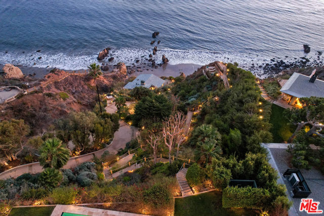 Former Disney Seaside Compound with access to a private secluded cove. Ideally set on 2.8 landscaped acres of prime oceanfront land in Malibu, it includes the main house with 6 bedrooms plus a 2-bedroom beach cottage. Impeccable craftsmanship is on display, from the elegant decorative molding and built-ins found throughout to the custom bar in the wood-paneled parlor. Viking stainless steel appliances, a generously sized island with a butcher block top, and a large pantry highlight a kitchen that s worthy of a professional chef. Breathtaking views greet you from nearly every room, including the primary suite complete with a sitting room, fireplace, his & her bathrooms, a garden-style tub, and expansive walk-in closets. Multiple decks offer sweeping ocean views and brilliant California sunsets. You and your guests will enjoy a pool and spa, plus a dramatic flagstone patio with an outdoor fireplace as well as multiple seating options for taking in the coastal vistas. Escape down the private driveway to find the fully equipped, sun-drenched guest cottage where vaulted ceilings with exposed beams await lucky visitors. Among the many other benefits, this outstanding residence has to offer is the detached gym for working up a sweat and private stairs for direct beach access. Buyer to verify all information. SUMMER Rate $275,000 per month. Also available for sale $72,000,000.