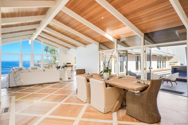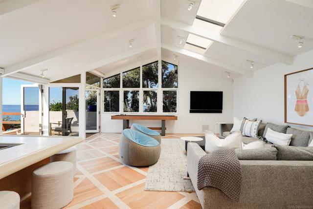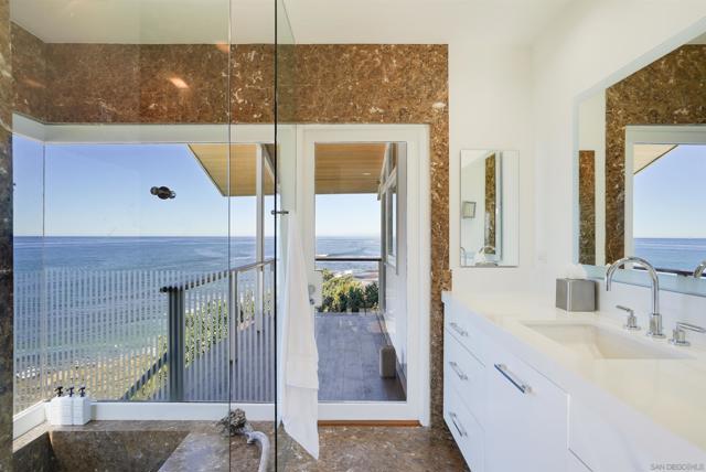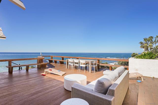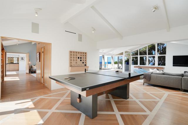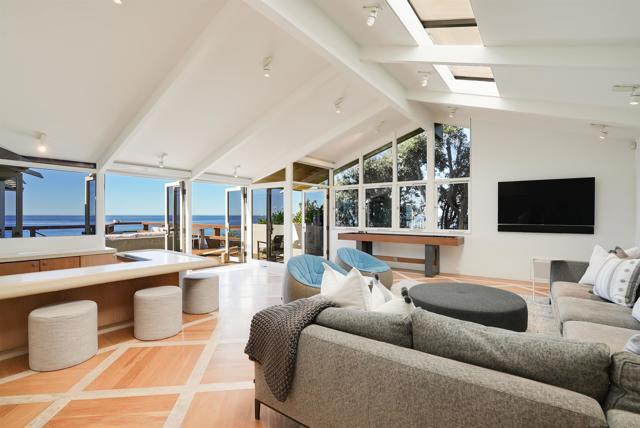 This secluded oceanfront estate in the coveted Lower Hermosa neighborhood! This private home is barely visible from the street, yet open to the gorgeous Pacific Ocean and rocky coastline that creates drama with mesmerizing waves and seagulls flying by. This four-bedroom, six-and-a-half-bathroom, 6,300 sq. ft. two-level home is decorated with pristine modern coastal accents and amenities.A pool in the middle of the home creates a private oasis and is accessible from many rooms. The floor-to-ceiling doors and windows allow you to enjoy the full view and experience true inside/outside living. An expansive teak ocean view deck has multiple seating areas and an alfresco dining table that seats eight.The living room has a white marble fireplace as well as beautiful comfortable seating clusters from which to enjoy sweeping views. There is also family room with a Ping-Pong table, a stand-up video arcade, a shuffleboard table, corn hole boards, games, plus a wet bar that opens to the deck with outdoor dining. A pristine modern kitchen has everything you need to satisfy your culinary desires. There are two inside dining tables. One is in the kitchen, next to a breakfast bar with three high-tops so everyone can informally eat together, and the other is in the great room. On the first floor is a spacious king main bedroom with panoramic ocean views, a private office alcove, and a one-of-a-kind ocean view shower in the main bath with its own private deck. A beautiful staircase takes you to the second floor where there are two additional king bedrooms plus a bedroom with twin bunks. This is an ideal remote work location with a private office, and several other desk spaces and tables to accommodate laptop use throughout the house with beautiful views to enjoy while working.