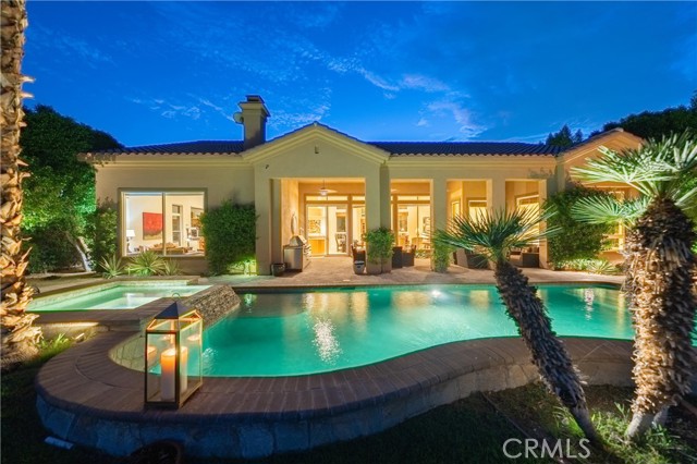 This home offered for monthly rental is an entertainer’s dream. Located on the 13th fairway of the Jack Nicklaus Tournament Course at PGA West. With luxury indoor and outdoor living areas and four en-suite bedrooms, this property is great for a trip to the desert or a golf outing with family and friends. Upon entrance you will find a formal living and dining room (seats 8) with cathedral ceilings and a wet bar. The family room has a large TV with cable and a functional fireplace. The fully equipped kitchen has granite countertops, dual ovens and a large breakfast bar and table for four.rnThe spacious outdoors of this home allow you to soak up the La Quinta sunshine in the backyard living area with a saltwater pool with a tanning shelf, hot tub, and a covered terrace with ceiling fans, outdoor table for six, a built in BBQ and a firepit. rnrnEvery bedroom boasts high end luxurious items such as Frette linens, Roam toiletries and two bathrobes in each room. In addition, there is high speed internet and smart TV’s in all of the bedrooms and family room. There are three bedrooms in the main house. The master bedroom boasts a Cal King bed, as well as a desk and office area. The bathroom features dual sinks, tub, shower and a very large walk in closet accessible from two entrances. The secondary bedroom has a queen bed and an en-suite bathroom with a shower. The third bedroom has two twins with their own en-suite bathroom that has a shower. The detached casita is located to the left off the private courtyard and has it’s own private entry. The casita has a Cal king bed, en-suite bathroom with a shower, and a walk in closet and cable TV.rnrnEvery January, the PGA Tour hosts the American Express Golf Tournament at PGA West and they use this course. Imagine watching professional golfers from the backyard with your own private viewing area. Monthly rates as follows: Nov: $14,500, Dec: $15,000, Jan: $20,000, Feb: $20,000, March: $20,000, April: $25,000, May: $12,000-$15,000, June/July/August: $8,000, Oct: $12,500