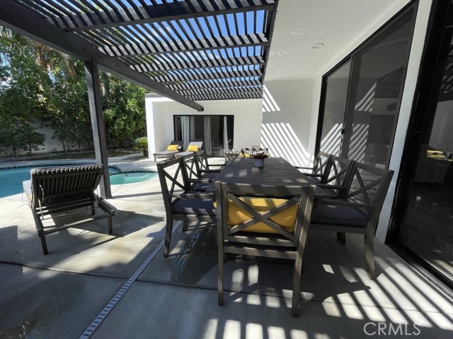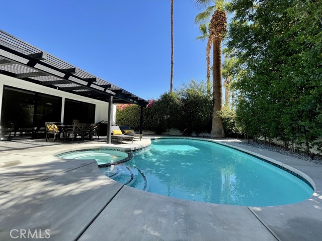Desert living at its finest. Our home is located in one of the finest neighborhoods in the desert & close to shopping, dining, golfing, tennis, bike trails, hiking, casinos and much much more. A custom remodel completed in 2021 makes it feel as if you’re stepping into a brand new home. Featuring 3 bedrooms, 3 baths, a powder room, bonus outdoor bath, massive living and dining room, tv room, game room and a sparkling pool/spa.rnrnThis home offers a large, fully stocked galley-style kitchen (with breakfast nook) featuring quartz countertops, high-end appliances, tons of cabinetry and skylights for natural light. Enjoy the large vaulted ceiling living room and dining room that open to the outdoors with massive sliding patio doors offering effortless indoor/outdoor living and entertaining.rnrnThe master suite is huge, offering an en-suite bath, large walk-in closet, gas fireplace, office desk and direct access to the south facing back yard. Each of the spacious guest bedrooms have large closets, their own charming baths and shared outside patio area. Rear patio pavilion is south-facing & ultra-private with citrus & palm trees.rnrnBasic amenities have been provided including clean bedding, fresh towels, bathroom supplies, and more. You also have full access to the washer and dryer located in the attached garage. The kitchen is at your disposal. Feel free to use our cookware, utensils, and all appliances as needed. House is equipped with smart TV’s with access to internet apps like Netflix, Amazon, and Hulu.