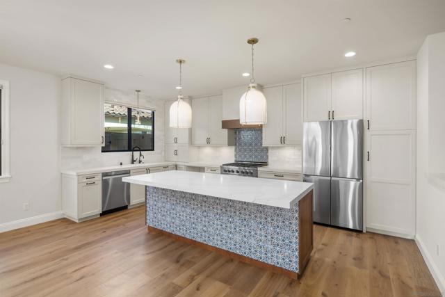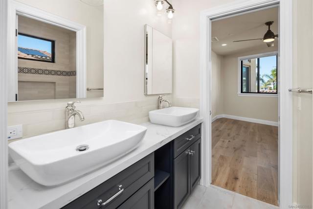 BRAND NEW CONSTRUCTION! Be the very first occupant of this beautiful new-build on the bayside of Coronado island. Stunningly designed with an eye towards beauty, natural light and functional living, this home is top tier at every level. The many custom features include: * High ceilings, solid double insulated walls with maximum noise mitigation, quality construction and well thought-out storage and floorplan. * Beautiful wood floors and abundant natural light throughout home. * Gourmet kitchen with Dacor stainless appliances, ceramic tiled walls, and quartz countertops – gorgeous! * Living area / great room opens out to a private fenced backyard area. * Fireplace, chandelier lighting, and large island are just a few extras to make this house a “home”. * Primary Bedroom en suite with vaulted ceilings, custom lighting, custom closet with shelving and storage, and spacious oversized tiled shower! * 2nd primary bedroom en suite on the ground floor with all the same amenities. * 3rd and 4th bedrooms each have vaulted ceilings, inset lighting, and ceiling fans. Each room also has a private sink area and a shared tub area in a “jack and jill” configuration. * Fully AIR-CONDITIONED for maximum comfort and quiet. SOLAR. * Full-size washer and dryer * Lovely outdoor area allows for maximum enjoyment of the temperate San Diego climate, the focal point of which is a combined water fountain with surround fire feature. * ATTACHED garage with custom built-in storage. * Two off-street parking spots (one garage and one carport) * Walk to shops, restaurants, bay, and Ferry Landing.