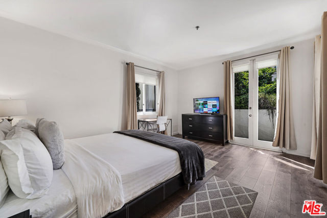 Spacious Beverly Hills 2 Bedroom Ground Level Apt. with Large Private Patio. Situated on a quiet street by Wilshire Blvd and La Cienega Blvd. Included on site is a Spa, outside lounge seating and a small on-site gym. This West facing apartment has Floor to Ceiling French Window Doors allowing lots of natural sunlight and view of natural vegetation. California King Bed in the Primary Bedroom and 1 or 2 beds in the 2nd bedroom. This gated community comes with 2 side by side gated garage parking spaces as well as plenty of guest parking. Full size in-unit Washer/Dryer included. Your own Private High-speed Wifi Network with 100-400 mbu’s. Roku TV with TV in both bedrooms and desks. You will be ideally located between the popular The Grove and Beverly Hills. The unit is conveniently located 1 mile from Cedars Sinai, 1.5 miles from The Grove and 2.5 miles from Rodeo Drive in Beverly Hills. Also, walking distance to La Cianega Restaurant Row which has a large selection of top quality restaurants from Fogo de Chao, Matsuhitsa, Lowry’s Prime Rib, The Stinking Rose, and many more. Also ideally located opposite to a large sporting park ideal for walking and jogging. Come experience this private and quite community in a relax and upscale setting
