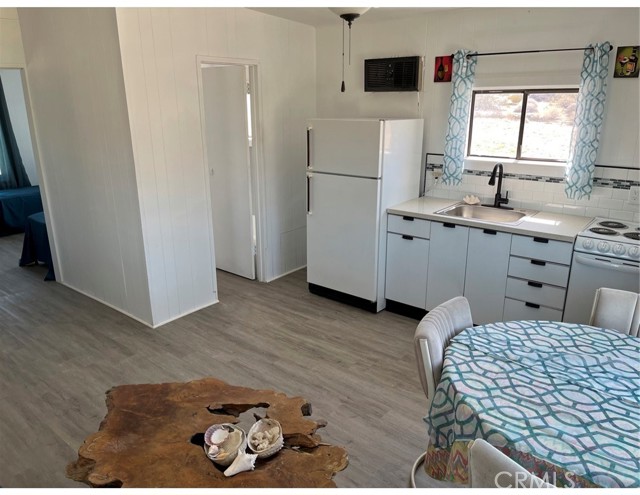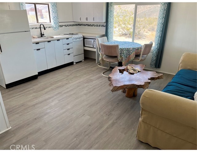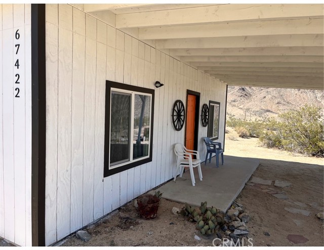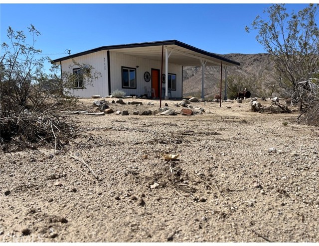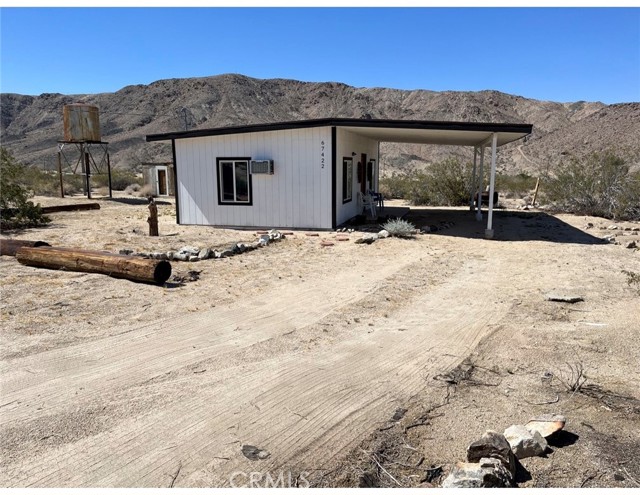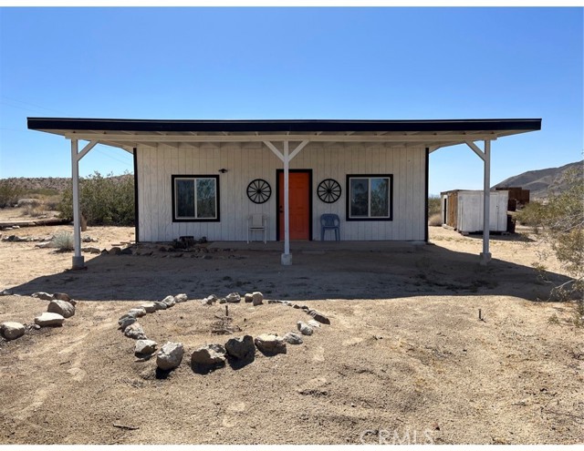 Looking for a custom, nostalgic desert getaway? Then look no further! This beautiful 1 bed 1 bath single level home is located on 5 acres that sit between Joshua Tree National Monument and Twentynine Palms. With panoramic Mountain Views of Indian Cove and Copper Mountain, this home is a desert lover’s dream. Boasting a sleek black and white exterior and a newly renovated interior, this desert gem is tucked away in a quiet neighborhood surrounded by relaxing desert nature. This home is turnkey, ready to go for your next investment property but also provides a blank canvas for the new home owner’s design. This desert home is one of a kind and is perfect for nature loving couples and hobby enthusiasts alike.rnThis desert gem has everything you need and more… it is equipped with a shared well and is currently being installed with a 2000 gallon water tank. It is fully powered and can easily be financed with a conventional loan!rn*CURRENTLY BEING CONVERTED TO SFR*