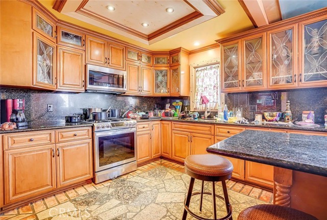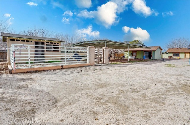 Welcome to this magnificent spanish style ranch home sitting on a 36,076 sqft lot!! This ideal home brings you a secluded and private house and tons of land to bring your creativity and skills to create your dream space! The grand living room features an open floor plan with custom stone floor, In addition, the living room also includes a large bar great for entertaining. The kitchen is very spacious offering plenty of cabinets, a dining area, granite countertops, and a breakfast bar! The garage has large attached room with bathroom and the potential to create a ADU, home office, game room, or whatever your heart desires! Bring your animals! This home features two horse corrals. Large camper is included in sale! Huge storage hangar for cars, boats, or other motor toys. Aside from the home, this property comes with a roomy and convenient workshop and tons of storage! Do NOT miss your chance on this amazing opportunity!