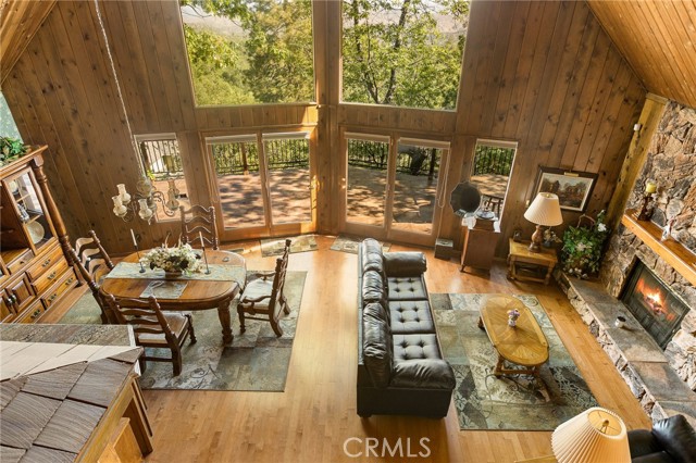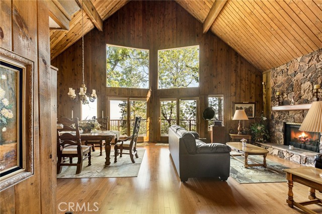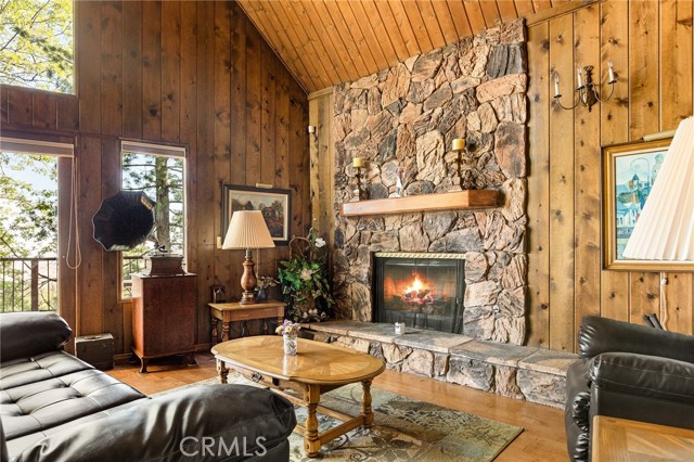 Nestled amid the serene embrace of the San Bernardino mountains, this exquisite home stands as a testament to impeccable craftsmanship and thoughtful design. Boasting a seamless blend of rustic allure and charm. Located on a quiet street , this wonderful mountain retreat comes furnished and ready to go. Immerse yourself in the breathtaking four season views as you gaze out the large windows or sit outside where morning coffees never tasted better than when sipped in the luxury of such stunning scenery. As you step inside, you’re greeted by the magnificent large vaulted ceilings and prow style allowing natural light to flow through the open living spaces. This 3 bed, 3 bath perfect blend of grand meets rustic charm. This home has not only one stone fireplace but two that create an atmosphere of warmth and comfort. Not to mention, a lower-level living space complete with a bar. Wine aficionados rejoice, a beautifully designed wine area ensures your favorite vintages are always on display and within reach. Perfect for hosting intimate gatherings or simply winding down after a day’s adventure. This mountain home is more than just a residence—it’s an experience, a lifestyle. It invites you to discover the perfect balance between the untamed beauty of nature with this lake rights home and the cultivated sophistication of mountain living. Dive into this home, and let the lake arrowhead magic begin.