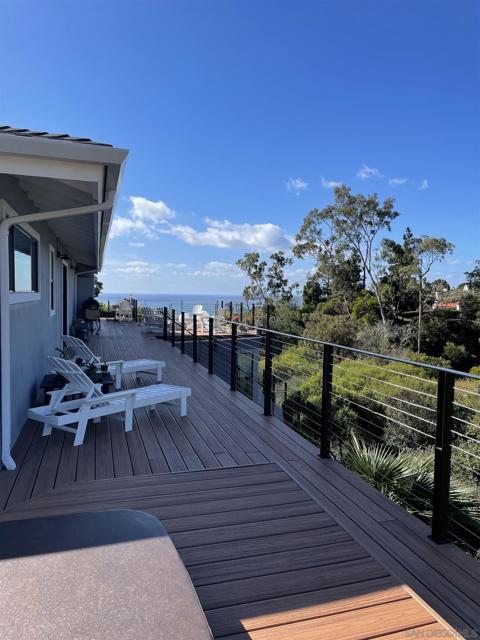 Spectacular fully rebuilt from studs single-level home situated on one of the most beautiful and quietest streets in La Jolla. Stunning greenery and ocean views from almost every part of the home. 4 bedrooms, 3.5 ba with beautiful engineered hardwood flooring. Brand new Italian kitchen with top of the line appliances, Miele, Wolf, Sub Zero fridge. Brand new ocean-view hot tub. Massive outdoor deck perfect for entertaining overlooking serene greenspace with no neighbors behind you and integrating indoors and outdoors. Avail: Oct. 1 to Feb. 15th 2024
