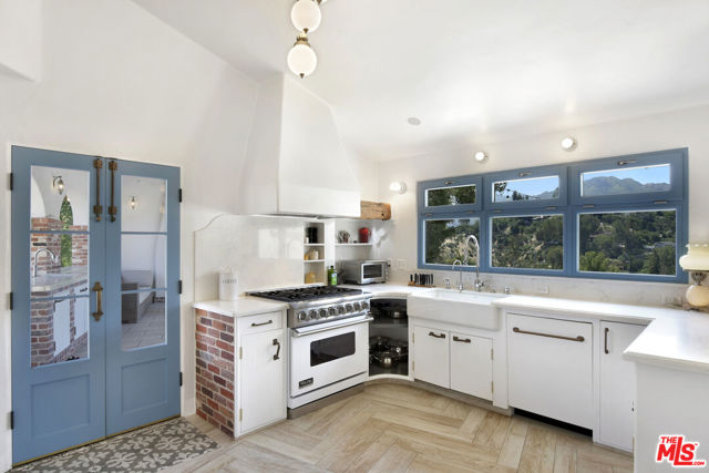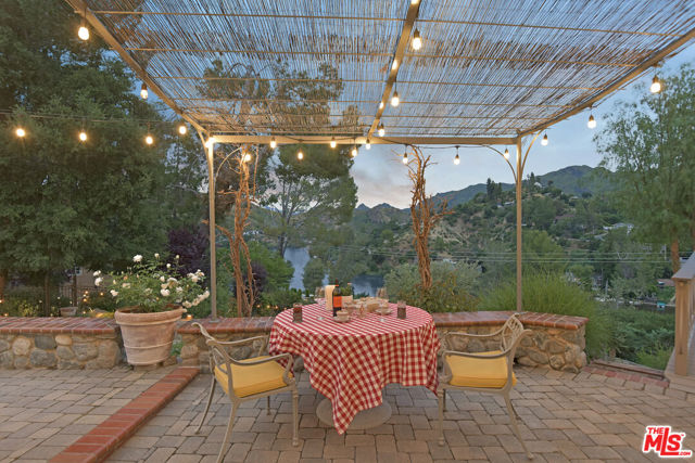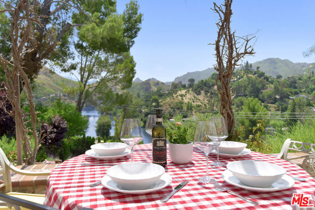 Welcome to Villa Santorini. This stunning property embodies the epitome of architecture and design. Nestled amidst majestic mountains, this residence offers breathtaking panoramic views that stretch as far as the eye can see. The gated property’s prime location above Malibou Lake provides an unparalleled view of the serene and glistening lake, offering tranquility and peacefulness that is unmatched. Inspired by the grace and elegance of a Greek villa, this home boasts a timeless architectural design that seamlessly blends with its natural surroundings. Immaculately designed, the property features three bedrooms and three bathrooms, providing relaxation and privacy. Each room has been thoughtfully crafted to offer a harmonious balance between functionality and aesthetic appeal. European windows adorn the residence, allowing natural light to flood the interiors while framing the captivating vistas outside. These windows serve as portals to the awe-inspiring mountain and lake views, creating a sense of connection with the surrounding nature. The interplay between the indoor and outdoor spaces creates a harmonious atmosphere that invites you to enjoy the beauty of your private garden and surroundings. No expense has been spared in the selection of materials for this home. A collection of custom-made elements graces each corner, adding an exquisite touch of luxury and sophistication. From the finest finishes to the carefully chosen fixtures, every detail has been meticulously curated to create an environment that exudes refinement and opulence. Hand scraped wood floors, hand made roof tiles, travertine stone, solid oak wood, porcelain tile, antique Italian Murano glass lantern lamps, and a prohibition era wine cellar merely scratch the surface of what this home has to offer. Maintaining the 1920’s era charm, Villa Santorini was rebuilt in 2017. In addition to this remarkable home, you have access to an impressive club house that sets the stage for a lifestyle of elegance and leisure. This club house serves as a gathering place for residents, providing a space for socializing, entertaining, and enjoying various recreational activities. The amenities offered include a pool, tennis court, pickle ball court and a picnic area that elevate the living experience, creating a sense of community and camaraderie among residents. Lake rights are a coveted feature of this property, allowing you to indulge in a multitude of water activities such as boating, fishing, and swimming. These rights include a space to create a private dock to call your own. This property offers an extraordinary living experience, with its captivating mountain views, an idyllic lake setting, and Malibu Villa Santorini style. Prepare to be enchanted by the beauty and serenity that await you in this remarkable oasis.