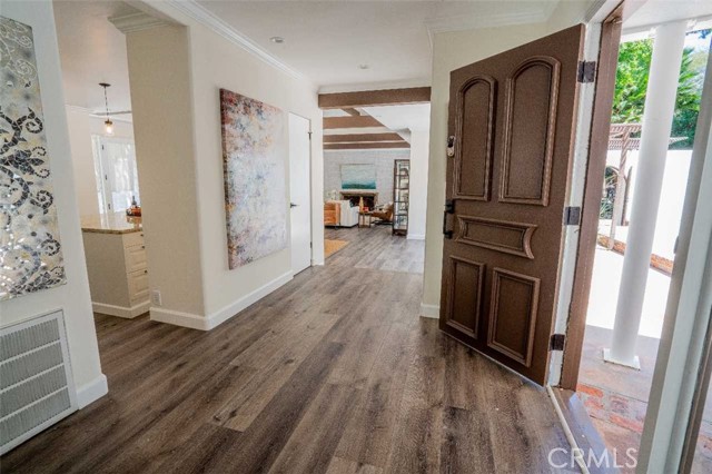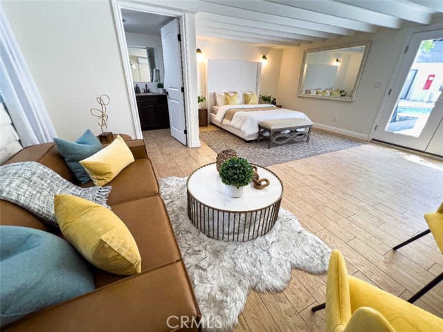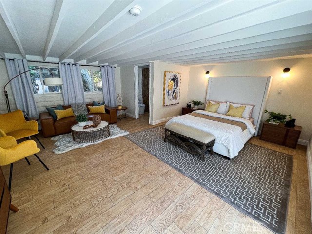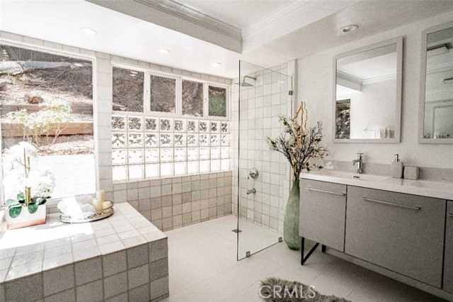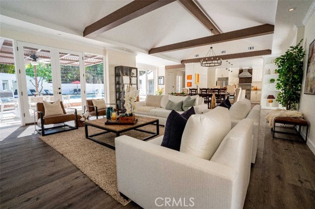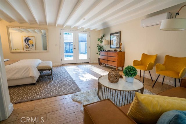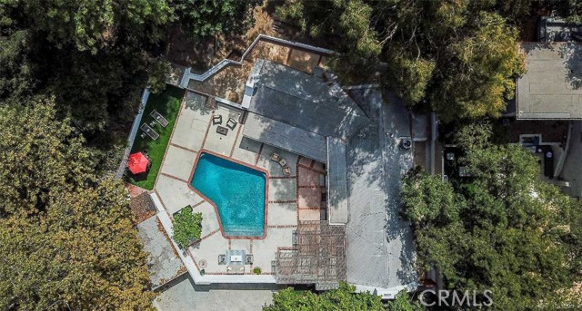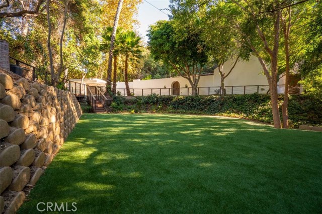 Sitting on nearly half an acre, this updated villa nestled in the heart of Studio City is a MUST-SEE to truly appreciate. Set back more than 125 feet from the street, you enter the estate through a generous motor court and over a bridged stream with parking for more than 10 cars. The entry is surrounded by luscious trees, huge gardens, and numerous nature yards. The foyer opens into the formal living room and dining room which looks out to the vast pool. The vaulted and beamed ceilings enhance the warmth of the living, family, and dining area and is accentuated by an abundance of natural light. The well-appointed kitchen has a Viking range, new fridge and dishwasher. The master bath has a new vanity and infinity entry shower. All rooms open to the serene hillside. Abundant patios for indoor-outdoor dining and endless entertaining. A separate guest/office/gym/pool house opens to the pool courtyard. Large lot invites adding extensive square footage and personal touches. This is a one-of-a-kind private and serene home awaiting that discerning owner desiring a majestic gem in their own enchanted forest.