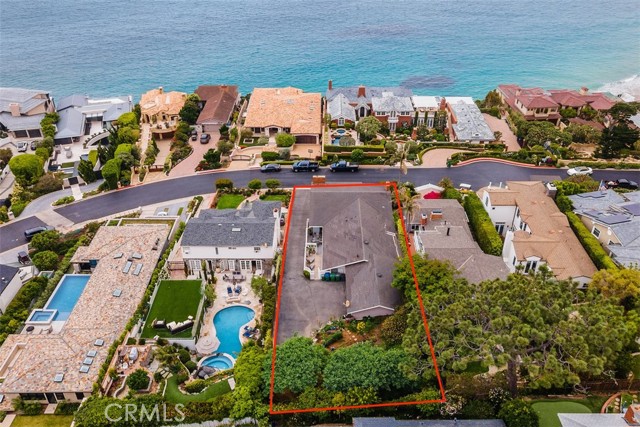 With breathtaking views, coastal mid-century modern design on an oversized lot, 35 N La Senda is truly a unique property and offers a WOW factor along with an incredible opportunity for your dream home in desirable lower Three Arch Bay. Situated across the street from the oceanfront, on the most desirable street in lower Three Arch Bay, North La Senda, you will experience ocean breezes and hear the waves while enjoying ocean, Catalina, whitewater, sand and north coastal views up to 1000 steps and beyond. Upon entering the home, there is a spacious ocean view deck, adjacent to the living area. The living area has sky high wood beamed, vaulted ceilings and impressive fireplace. Wood flooring in all the main living areas. Great for entertaining, a separate dining area with outdoor patio access and ocean views, opens up to the main living area. rnThe kitchen delivers function and character with butcher block counters and retro tile backsplash. There is an adjacent outdoor patio, perfect for al-fresco dining or enjoying your morning coffee. The spacious primary bedroom has vaulted, wood beamed ceilings, wonderful north coastal views, large walk-in closet and cozy fireplace. Updated primary bath with dual sink, walk-in shower. Two more bedrooms and a full bathroom with dual sinks complete this relaxed and spacious feeling home. 3 car garage along with ample additional driveway space for additional parking. Extra outdoor space and rear yard with landscaping and trees. Bonus: there are architectural drawings available for 5900sf and 4100sf home. The over 11,000sf lot offers potential to add ADU. The possibilities are endless. This really is a special one – lot location, size and incredible views. A must see! Three Arch Bay is a highly sought after community with 24 hr gated guard access, private beach access, clubhouse, park, tennis courts, sport court.