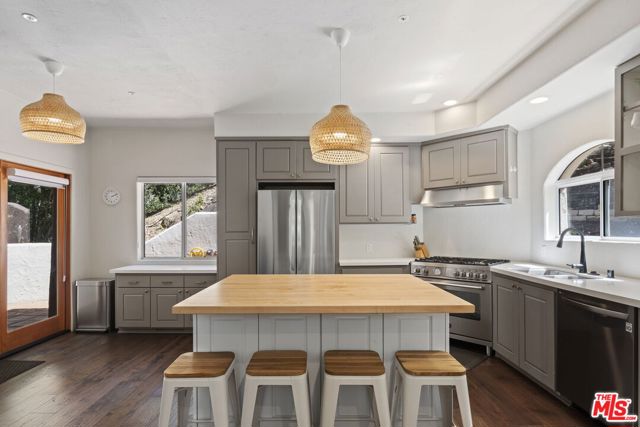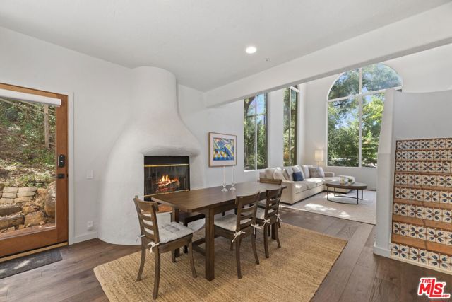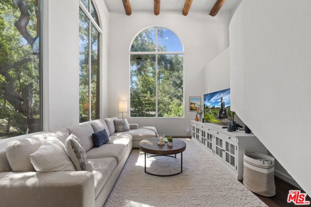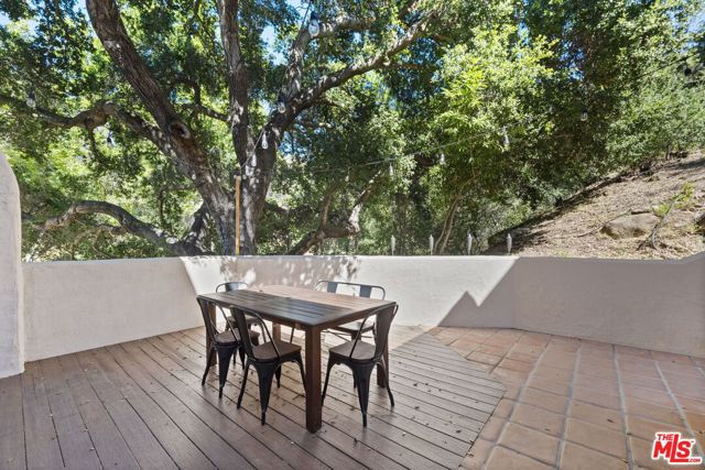 Located in the breathtaking Malibu Canyon, this enchanting Monte Nido property exudes Spanish-style charm and canyon living at its finest! Tall arched windows and vaulted ceilings frame epic views of majestic ancient oaks, picturesque pine and sycamore trees. Newly remodeled gourmet kitchen adorned with quartz countertops, abundant custom cabinets, a sizable center island, and top-of-the-line stainless steel appliances, including a Bertazzoni range. A cozy wood-burning fireplace offers a warm retreat during chilly winter evenings. French doors lead to outside patio for al fresco dining amidst the enchanting ambiance of Oak trees. Spacious primary bedroom on the main level featuring abundant windows that invite the beauty of the outdoors inside, creating a truly serene space. Huge rooftop deck upstairs provides another idyllic spot to revel in panoramic views and enjoy the sounds of the outdoors. This is a highly sought out location that you don’t want to miss! Just minutes to the stunning Malibu beaches, hiking trails and Calabasas Commons.