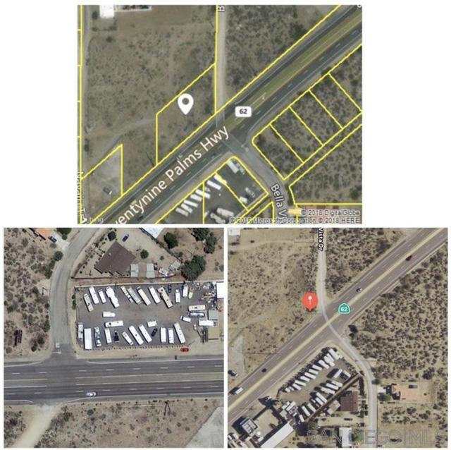 LOCATION LOCATION LOCATION!!! Prime commercial corner located at Location Location Location! Discover this prime commercial corner situated at the bustling crossroads of 29 Palms Hwy and Bella Vista Dr. Your gateway to success boasts a remarkable 180 feet of highway frontage, right at a well-lit intersection that witnesses approximately 30,000 vehicles daily. Why You Can’t Miss This: Minutes from Palm Springs: Embrace the allure of Palm Springs, a stone’s throw away! A vibrant city that beckons with its glamour, offering countless opportunities for your business to flourish. Close to Joshua Tree National Park: Be part of the magic of Joshua Tree National Park, a captivating natural wonderland attracting a staggering 3 million visitors annually.