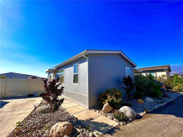 Become just the second owner of this recently built 2021 “Creekside Manor” model home built by Champion Homes. Located in the private gated community of the Las Palomas Estates in West Calimesa, this model features three bedrooms & two bathrooms with 933 square feet of living space! The home has an open concept with an abundance of natural light. This home feels like brand new and offers many tasteful upgrades such as: central air conditioning & heating, an integrated whole house fan system, dual pane high-efficiency glass windows, added insulation throughout the walls, floors, & ceilings, solid granite countertops, new cabinetry, upgraded kitchen, laminate flooring, recessed lighting, vinyl fencing, plus so much more. The lot space is approximately 3,050 square feet that includes a fenced off backyard and side yard area. The backyard has a new 7′ x 14′ permitted shed which is used as an astronomy observatory, or you can use it as a garden house with a large roof hatch/sky light. The space comes with a three-car carport and one reserved parking space. Las Palomas Estates is an all age, family community that includes a large club house with a billiards/game room, sparkling pool & spa, dog park, and two newly proposed parks. This community is very private and secluded, located on its very own mesa overlooking Live Oak Canyon and the Cienega Canyon Preserve. The community also has breath-taking views of Galena Peak, Mt. San Gorgonio and has amazing sunsets. Conveniently located on the border line of Riverside and San Bernardino Counties this community park is just west of the 10 freeway. Nearby attractions include Oak Glen Nature Preserve, Yucaipa Regional Park Lake, Morongo Golf Club, Live Oak Canyon Farm Park, and the Sun Lakes Country Club. This community is situated in the rapidly growing city of Calimesa, don’t miss out on the opportunity to purchase this affordable newly built manufactured home and become just the second owner! The sale of the home includes the refrigerator and a range oven stove. Nearby Schools in Calimesa are Calimesa Elementary, Mesa View Middle School, Yucaipa High School.