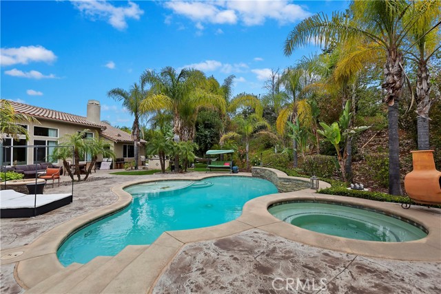 PRICED TO SELL!!!! Beautiful 5 bedroom + bonus office home situated in the private gated community of Seven Oaks sits on a quiet cul-de-sac with only 38 homes in the community. Upon entering the Double beveled front doors, you are greeted with elegant pillar columns, open formal Living/Formal Dining area, and windows that overlook the spacious patio and pool area! The open floor plan and large windows all around let natural light brighten up the home that help save on energy costs. Gourmet-Kitchen features a large island, stainless steel appliances with built in gas range, double oven, microwave, dishwasher, built in refrigerator and a vast amount of storage space to store all your kitchen gadgets, and necessities. Spacious Family room is right adjacent to the kitchen with a warm cozy fireplace perfect for winter. All rooms sit on one side of the home with two bedrooms that share a spacious jack and jill bath. The large private Master suite has its own Jacuzzi, his and hers walk in closet, double sink vanity, stand up shower with unique upgrades throughout. Attention to detail is evident. Custom features in the home include beautiful bamboo and tile flooring, Plantation shutters, Crown molding, surround sound, soft water system, sky lights, whole house fan, master jacuzzi tub, epoxy garage flooring, 2 fireplaces with gas logs, 3 additional air conditioners, knotty alder doors, and High ceilings make this home special. The backyard shows a beautiful Rock Ledged Saltwater Pool & Spa, fully Landscaped 31,000+SF Backyard with Fire pit, Patio, BBQ Island, & large lawn for all your summer BBQ needs. Landscaping is pristine w/loads of Palm Trees, Tropical Plants, & Outdoor lighting. Located near Santiago High School, easy freeway access and lots of shopping/dining centers.