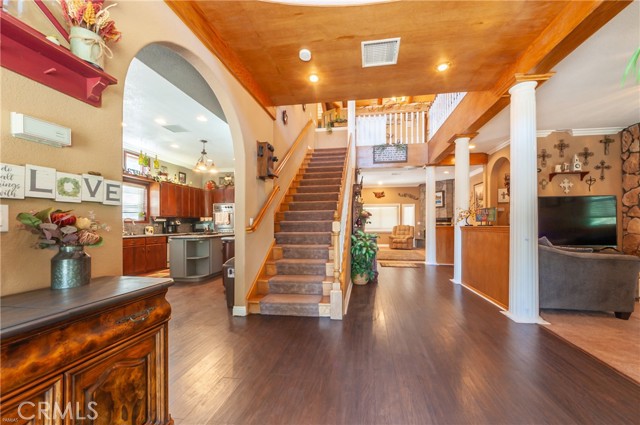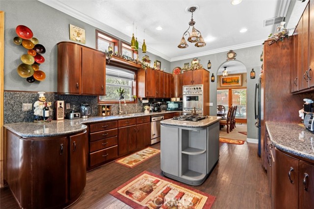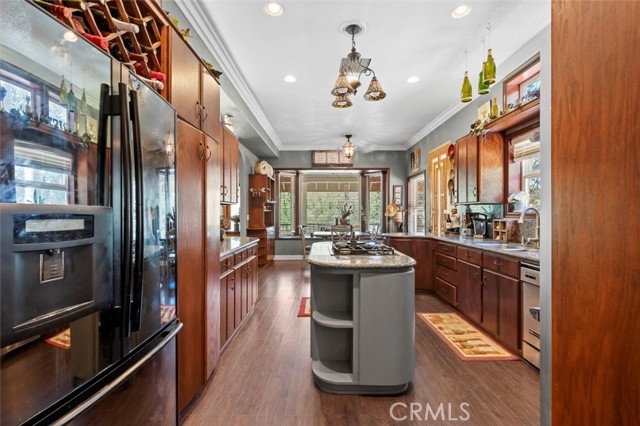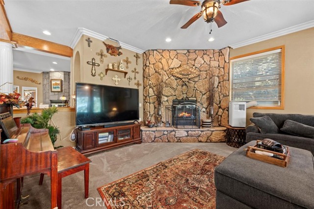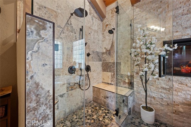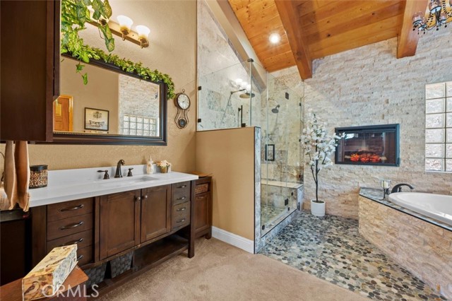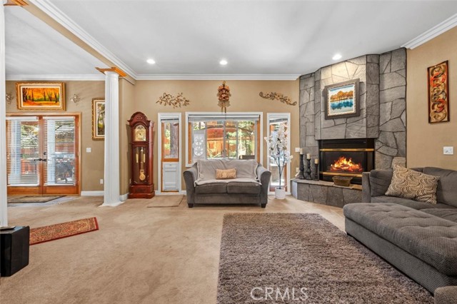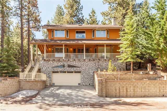 Custom Mountain Home, the perfect retreat that boasts comforting interiors and dramatic exterior! Featuring 3 Bedrooms plus an office and 2.5 Bathrooms! Beautifully updated master bathroom – spa like retreat featuring a spa tub, fireplace and beautifully updated tile in the tub and shower area! This home features a Generac stand by generator that automatically turns on when the power is off! Updated flooring and baseboards throughout! Custom crown molding installed on the bottom level, updated tiled laundry room floor! Fenced Backyard with security gate for the deck! This home has grand curb appeal, a grand entrance and features that are bound to impress! Featuring structural concrete foundation and steel frame construction! Magnificent home ideally situated and surrounded by pines with a large front and back porch to enjoy the crisp mountain air. If you’re looking for a home to entertain, this is it! This 3,360 square foot home features a family room and living room. Stunning open ceilings with sky lights. A custom kitchen made for entertaining, double viking oven, granite counters and wood cabinets! Large windows throughout the home that bring in lots of natural light and views of the trees! Large 2 car garage with a scissor lift conveniently located to take you from ground level to the main level in the home! Plenty of storage throughout the home! Three fireplaces! This is the perfect primary residence or weekend escape! Only minutes away from the slopes, downtown Wrightwood and hiking trails! This is the home you’ve been waiting for!