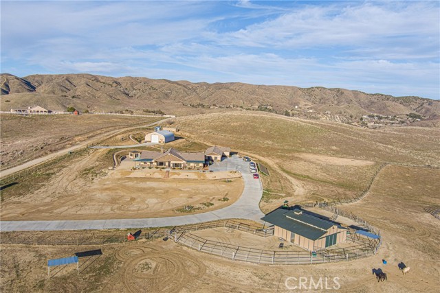 Welcome Home to this Gorgeous Handcrafted Custom Home that Sits on Over 10 Acres with Panoramic Views of Leona Valley. Expansive Gathering Spaces in this Single Story Home Make it Perfect for Entertaining Indoors & Outdoors. This Home Offers Beautiful Finishes Including Custom Alder Wood Cabinetry, Polished Granite Counters, High Quality Appliances, Fixtures & Attractive Flooring Throughout. The Home Features 4 Bedrooms & 3 Bathrooms. Spacious Family Room with a Custom Stoned Fireplace. Large Kitchen that Offers Upgraded Built-In SS Appliances, Large Center Island & a Walk-In Pantry. Spacious Master Suite Features His/Her Walk-In Closets, Separate Oversized Garden Tub & Custom Oversized Shower. Three Additional Bedrooms with Large Closets. Attached Oversized 3 Car Garage, & an Indoor Laundry Room. A Dream Workshop Featuring 2,375 sq. ft. to Store all of Your Toys and/or Your Classic Automobiles, Tools & Equipment. In Addition is an 1,800 sq. ft. 5 Stall Barn with Tack Room & Corrals for Equestrian Use. Fully Owned Solar System with 40 Panels & 2 Inverters Provides Terrific Energy Efficiency. Covered Patio Offers 1,400 sq. ft. with a Beautiful Built-In Kitchen for Outdoor Barbeques & an Enclosed Above Ground Hot Tub to Relax & Enjoy. Detached 1,000 sqft. Guest House Features 2 Bedrooms & 1 Bathroom, Indoor Laundry Room, & So Much More! Too Many Amenities to Mention Here. This Property is for the Discerning Buyer Who Desires Privacy & the Best of Everything.