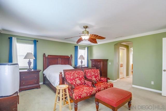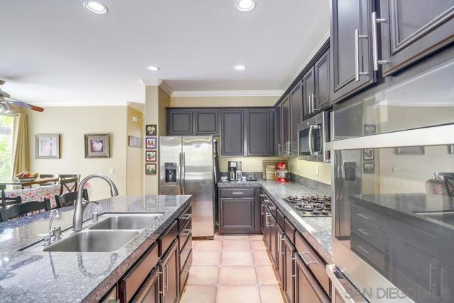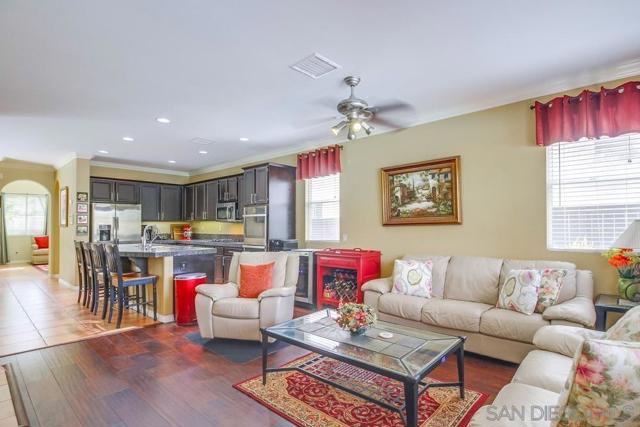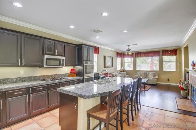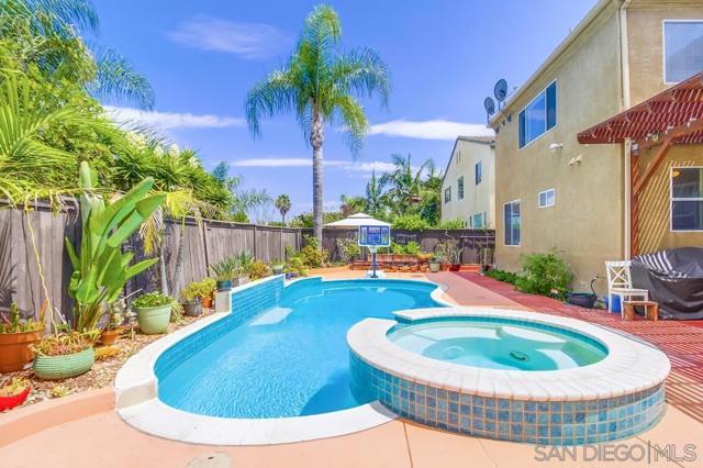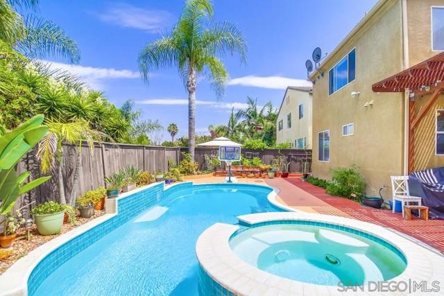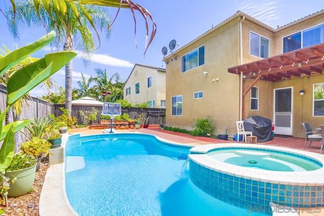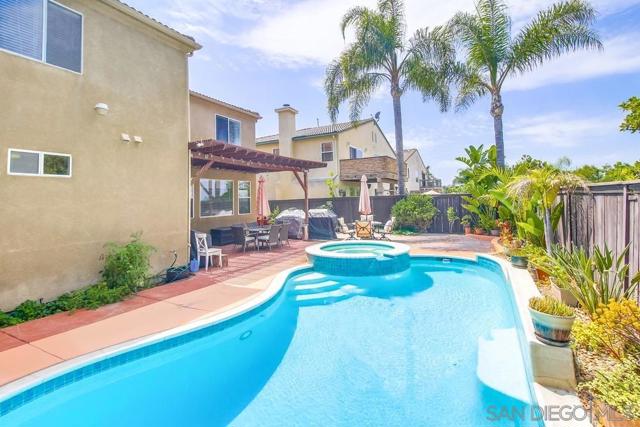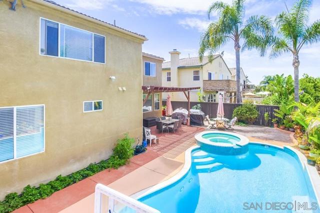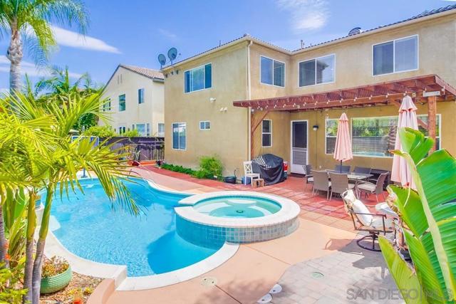 This stunning 4-bedroom, 3.5-bathroom Otay Ranch home is move-in ready and nestled in a highly desirable neighborhood. It boasts a 2-car attached garage with additional parking, as well as a convenient bedroom and full bath on the first floor. Features include impressive high ceilings, elegant crown molding, new A/C and heating systems, updated duct work, recessed lighting, ceiling fans, a cozy gas fireplace and a designer kitchen with stainless steel double ovens, dishwasher, and microwave. The newer water heater and a beautifully re-plastered pool and spa with solar heater (within the last 5 years) add to the home’s charm. The open and bright floor plan includes a separate dining room, a breakfast nook that flows seamlessly into the spacious family room and kitchen with center island. A large laundry room offers ample storage and an expansive upstairs loft provides extra living space. The grand primary suite boasts dual walk-in closets and vanities. The backyard is perfect for entertaining with a private pool/spa and a spacious patio area. Conveniently located near parks, shopping, restaurants and top rated schools. Truly a must see!