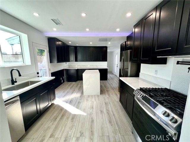 The perfect opportunity awaits; A Completely Remodeled Home in Burbank’s historic neighborhoods, you can explore the shady tree-lined streets with a mix of turn of the past century homes and enjoy the central location to all Burbank has to offer – short drive to the shops and restaurants, Whole Foods, and all the studios: Disney, Warner Bros, Cartoon Network, Nickelodeon, Universal/NBC. Nearby parks, ice skating, tennis, basketball, and fast access to trails in Griff. This house offers a beautiful kitchen with new espresso cabinets with plenty of storage with quartz countertops and large picture windows and doors for natural lighting it also has new flooring through the house with vaulted open beam celling that adds character and grandeur to the space. This home also has a new electric 200-amp panel, with a detach finish garage with EV ready connection. The house not also have a new HVAC, thankless water heater but it has a new updated double vanity sinks and a luxury bathtub to relax in. To top it all with fruit trees of lemons, Pomegranate, orange, and figs tree. This house will not last in this hot neighborhood that is Burbank so don’t miss out and come and see for yourself.