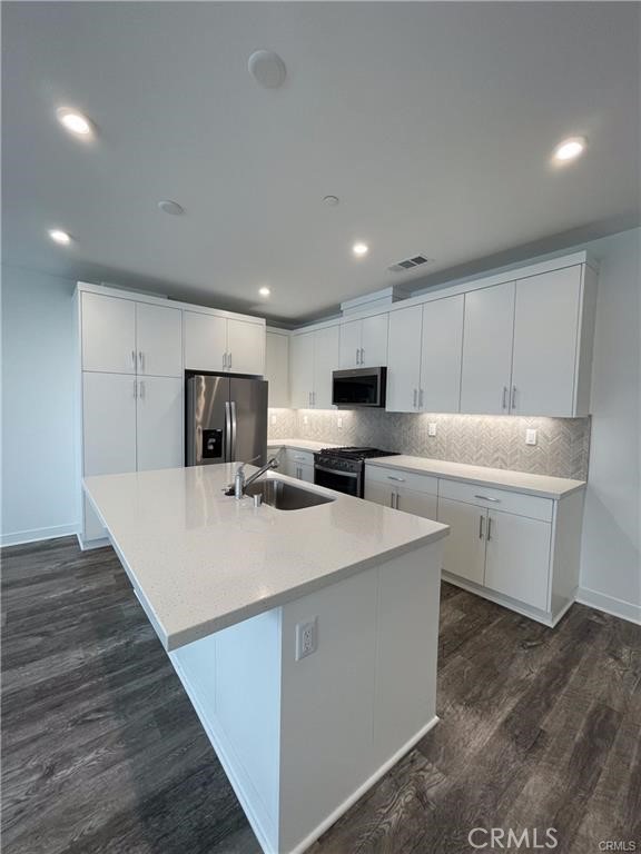 This condo located at the gated community build by Toll Brother comes with a 2-car attached garage, balcony at main floor , recessed LED lighting, upgraded kitchen with build in stainless steel kitchen appliances, quartz countertops, high ceilings, solar panels, electric vehicle charging, brand new refrigerator, washer & dryer. Next to the community pool and park. Conveniently located near Disneyland, Honda Center, Angel Stadium, Kaiser Permanente, professional buildings, college campuses, Anaheim Packing District, Santa Ana Mall and more!