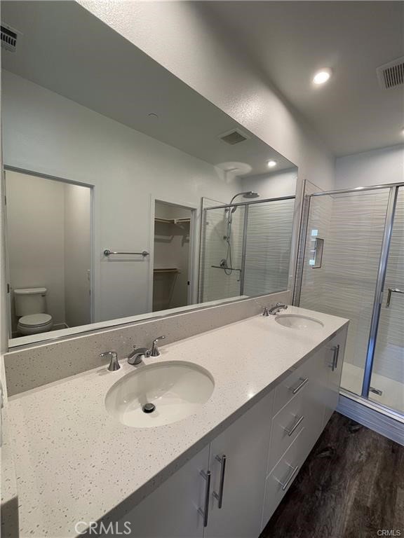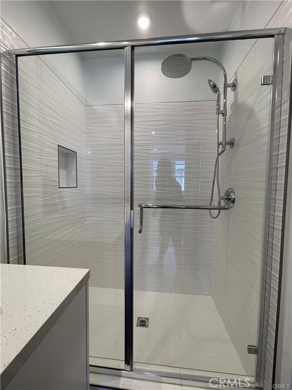 : Shower, Walk-in Shower, Exhaust Fan(s), Upgraded, Quartz Counters, Humidity Controlled, Double Sinks In Primary Bath