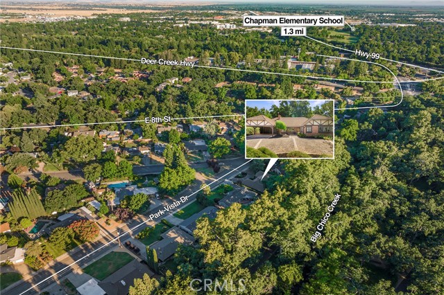 WELCOME TO YOUR NEW PLAYGROUND!! Presenting to you a striking Tudor-style home nestled directly on the picturesque PATHWAYS and CREEK of beautiful BIDWELL PARK! Literally just a few steps out of the backyard gate of the home and you are in the Park! This is an unrivaled opportunity to live next to Bidwell Park and enjoy the tranquil and idyllic setting this home has to offer. The prime location of this residence ensures proximity to Downtown Chico, Chico Mall, restaurants, esteemed schools just blocks away, freeway, and bus routes, providing the easiest route to key destinations. Boasting three extra-large bedrooms, this home offers abundant space for comfort and relaxation. The separate office provides the ideal setting for productive work or personal projects. Additionally, an additional room built off the back of the home presents countless possibilities – be it another office space, a cozy craft room, or a small TV area. The huge garage and shop/storage area is also an added plus! Let the captivating setting, coupled with the incredible location, leave a lasting impression on you. Don’t miss out on the chance to own an amazing piece of real estate that promises an unmatched lifestyle. Marketed below appraised value! Also, the Seller will provide a Pest Clearance, Septic Clearance, Roof Clearance and new HVAC making this home move-in ready!