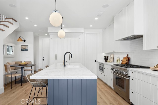 If a newly constructed, coastal chic surf pad has been on your bucket list look no further than 3702 Park Lane, on the Balboa Peninsula. Located on a hidden gem block facing the 38th St. Park, this locals’ favorite location is just a block from the sand and one house from the picturesque Rivo Alto Canal. With a splendid, sun-filled exposure the welcoming open floor plan features bespoke finishes throughout – from custom hardware to lighting to built-ins the devil is in the detail, and this home checks all the boxes. Designed for a relaxed coastal lifestyle the great room and designer island kitchen open to a spacious front patio that enjoys front row views onto the park. With a cozy dining nook, mud room, walk-in pantry, and artisan kitchen, entertaining an abundance of family and friends is a breeze. Upstairs, relax, unwind and take in the park views from the calming primary suite, enhanced by a private terrace, walk-in closet and beautifully appointed spa bath with double vanity, walk-in shower and soaking tub. Two additional guest room suites complete the second level. On the roof top the party really gets started! Enjoy the park views and have dinner al fresco, then take a soak at sunset in your private spa with water views, or cozy-up with a book in the bonus room/ lounge. Located in the heart of the Peninsula with easy walking or biking access to myriad shops, restaurants, entertainments venues, and Southern California’s best beaches this cheerful coastal abode is a must see.