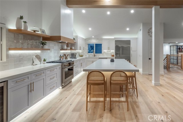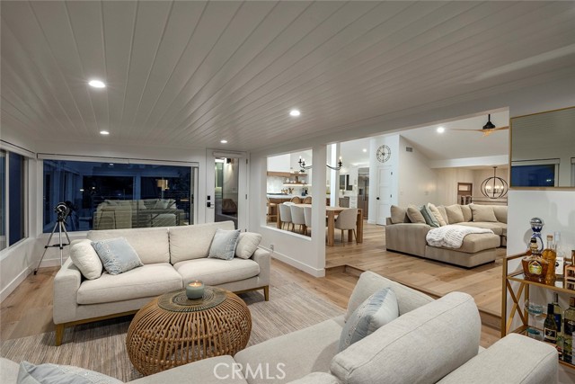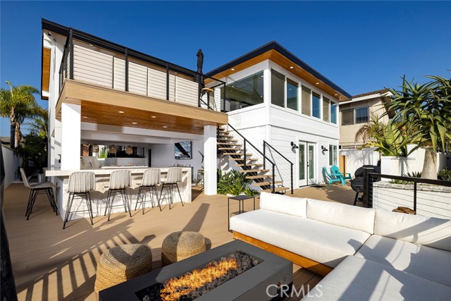 Nestled within the serene and picturesque enclave of Huntington Harbour, this stunning waterfront home embodies the epitome of modern coastal luxury living. With its captivating location along the water’s edge, this newly remodeled residence offers a harmonious blend of elegant design, breathtaking views, and modern amenities. The open living spaces are designed for both relaxation and entertainment, with multiple gathering areas, including an open living room and a spacious dining area overlooking the water. The modern kitchen features GE Monogram appliances, custom light wood cabinetry with quartzite stone. Panoramic bi-folding glass doors open to a waterfront patio, creating a perfect indoor-outdoor flow for al fresco dining and enjoying the serene waterfront views. Upstairs, the spacious master suite features a private balcony, an ensuite bathroom, and ample closet space. Downstairs, offers three additional bedrooms, including a secondary master with an ensuite bathroom. Outside, the home boasts a private turf yard plumbed for a pool and an oversized covered patio with infratech heaters, TV and built in BBQ fitted with quartzite stone, overlooking the water. The expansive deck fitted with a gas fireplace and wraparound seating offers views of the 35-foot boat dock. This beautiful waterfront home embodies the essence of coastal elegance and offers an unparalleled opportunity to experience the Southern California coastal lifestyle at its finest.
