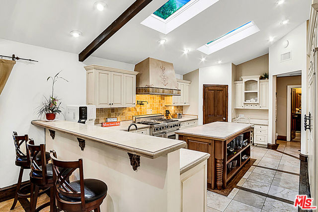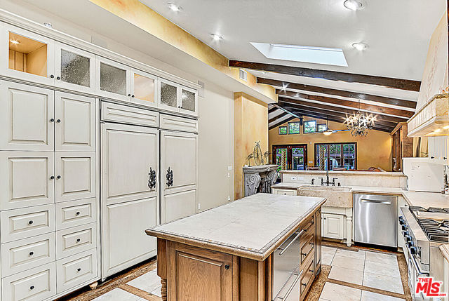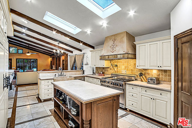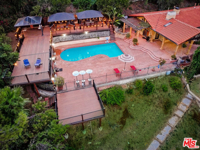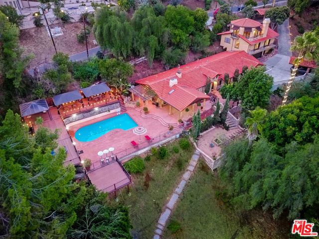 PRICE IMPROVEMENT!!!! Exquisite Mediterranean Estate designed and built by Dugally Oberfield that has designed homes for such as for Denzel Washington and many more. This home is located in beautiful La Habra Heights with a private villa setting making for the perfect entertainment home along with a custom-built basketball/volleyball court. Featuring 4 bed | 3.5 bath | 4,384 Sq ft | 39,206 sq ft lot., with a Guest House that is approx. 1,500 sq ft with 2 bed | 1 bath its own kitchenette, bathroom, living room. This home has it all with the beauty of mature trees surrounding the property allowing you to envision your lemon/orange groves or even adding your own vineyard. The Villa also includes inviting pool, spa, sauna, outdoor living room with a fireplace, a separate outdoor meditation area with a fire pit, waterfall, a newly built pool deck, bonus workout room, wine cellar, 2 fireplaces in the main house, and another fireplace in the guest house. The main house is single level with an open floor plan with high ceilings. The gourmet kitchen has all of the amenities a chef needs with a large island with stone countertops, a double oven Viking stove, dishwasher, built-in commercial grade refrigerator and separate freezer, additional refrigerator drawers, a farmhouse sink, that opens to the wood beamed ceiling family room. With doors leading to the outside from nearly every room, this Villa truly embodies both outdoor/indoor living. Outside the family room is a covered Italian columnesque outdoor entertainment area with a fireplace that overlooks the pool. The master bedroom is impressive with its wood beamed high ceiling, oversized walk-in closet and large, gorgeous master bathroom with marble tile and 4 extra additional closets. Add’l features: privately gated, 2 car garage, 2 carport and additional parking in the rear, parking accommodates about 13 cars.