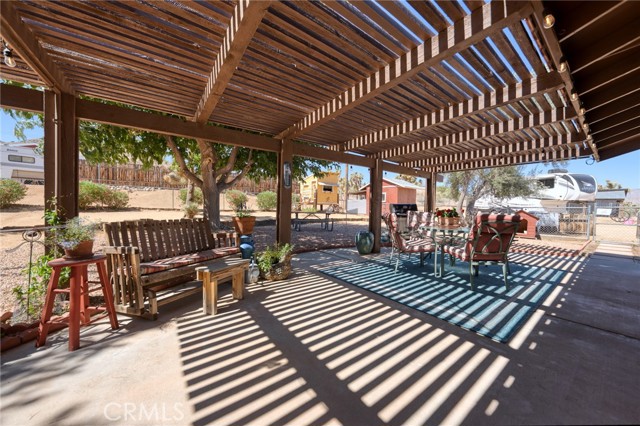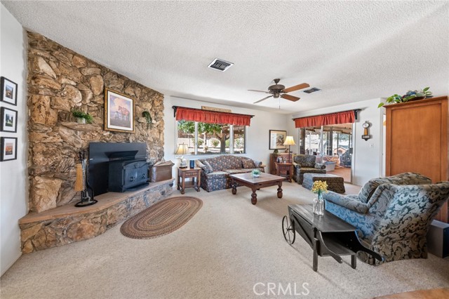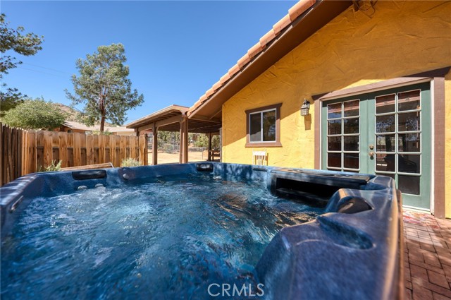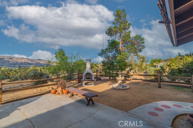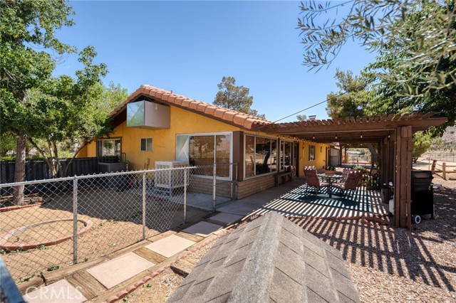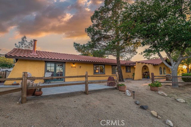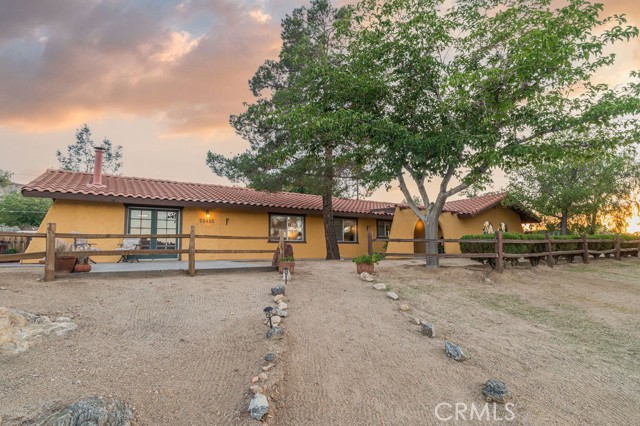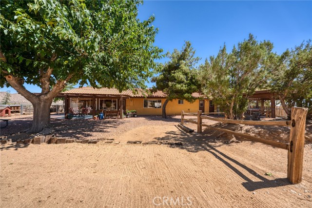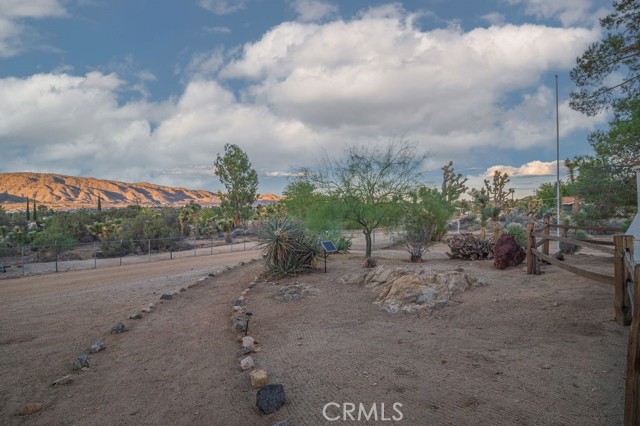 YUCCA VALLEY HIGHLANDS! This highly desirable location, nestled near the majestic mountains on the southern side of Hwy 62, offers stunning panoramic VIEWS! This splendid home boasts 3 bedrooms, 2 bathrooms, 2 wood stoves, and a fireplace with a wood stove insert. With an indoor laundry room and a thoughtfully designed split floor plan, the home spans over 1,900 square feet. Additionally, it features a delightful enclosed patio measuring 200 square feet. Situated on two lots encompassing 1.8 acres, this property provides ample space. The home itself is excellently constructed and includes amenities such as a spa, outdoor fireplace, tack room, and playhouse. Enjoy comfortable living with central heating and air conditioning, complemented by evaporative coolers. This residence is perfect for hosting BBQs and creating lasting memories with your loved ones. Don’t miss out on this incredible opportunity, as this home is truly a gem!