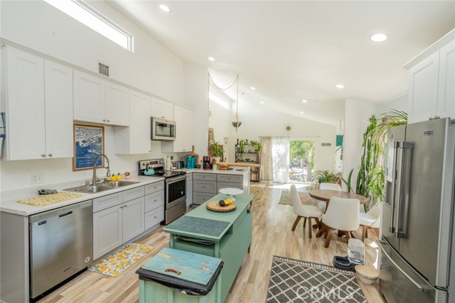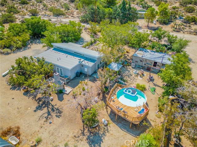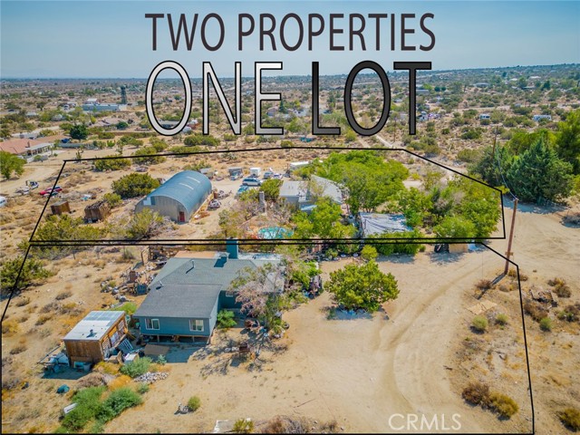 There are 2 homes on this lot. The main house is 2bd/2ba, 1460 sqft with large open kitchen all electric appliances and opens to the family room with high ceilings and lots of windows! There is an indoor laundry and large master bedroom with french doors that open to the outside patio. The second home is 854+ sqft, 3 bedroom 1 bath. This property is 5 acres, has an approx. 2,000 sqft large metal building. The landscaping is all mature with trees, ponds and garden areas, you will absolutely enjoy the outdoors. This property offers storage sheds and outdoor fireplace. Located South of 138, close to paved Mountain Road, Fire Station, Pinon Hills Park and Bus Stops! Don’t miss this one!