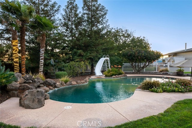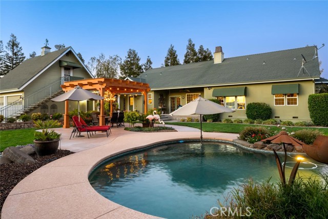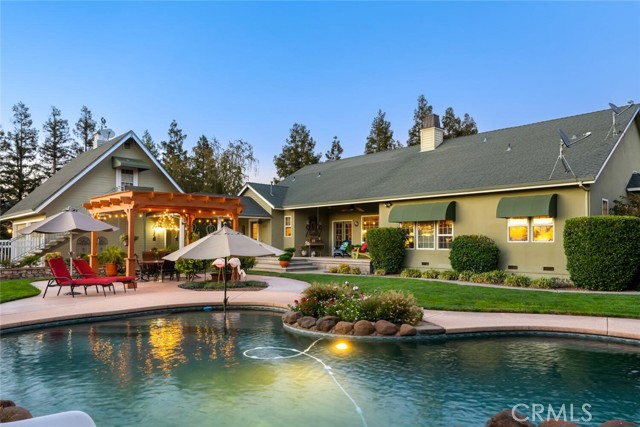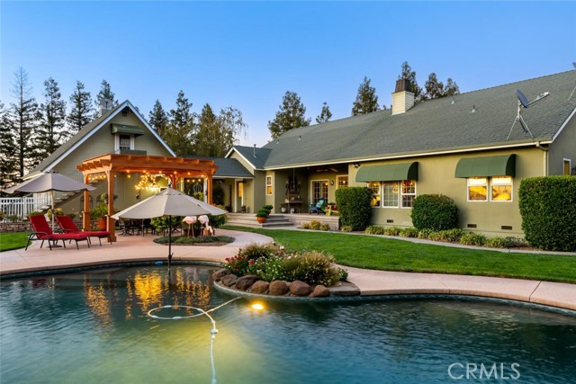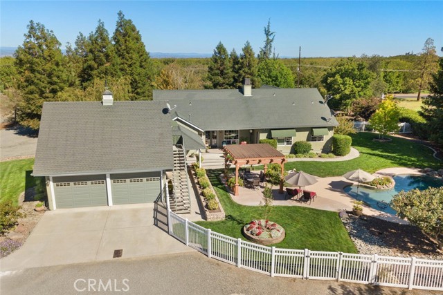 One of a kind property! Country living at it’s finest. 4 acre parcel, custom built home, guest unit, incredible 3 bay 1,920sf shop, owned solar panel system, pool, garden, chicken coop, covered RV parking, storage for equipment plus room for more! The home features were planned with comfort in mind. Chef’s kitchen, formal dining room, spacious living room and tasteful master suite. High ceilings throughout, crown molding, wainscoting and coffered ceilings are just a few of the details that were included in the design. The backyard showcases a Pebble Tec pool with a water feature, baja bench and slide. The oversized two car garage provides extra storage space. Above the garage is the guest quarters with full bathroom and even more storage space. The 32’x60′ shop is a hobbyist’s dream!! Many of the antiques and collectibles can be sold with the property. The electric lift makes working on vehicles a breeze. The shop is equipped with roll up doors, an office area, draft table, bathroom and wood burning stove. The walls are fully insulated to keep it warm in the winter and cool in the summer. The garden area is shaded and lined with box hedges. It is a perfect place to find some tranquility. Fruit trees include cherry, apricot, plum apple and Meyer lemon. There is enough covered parking for all your toys and equipment. And better yet, there is over an acre of room to expand in the back of the property..!