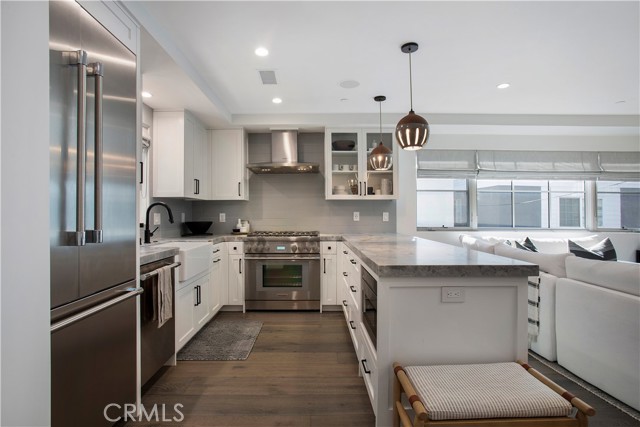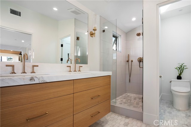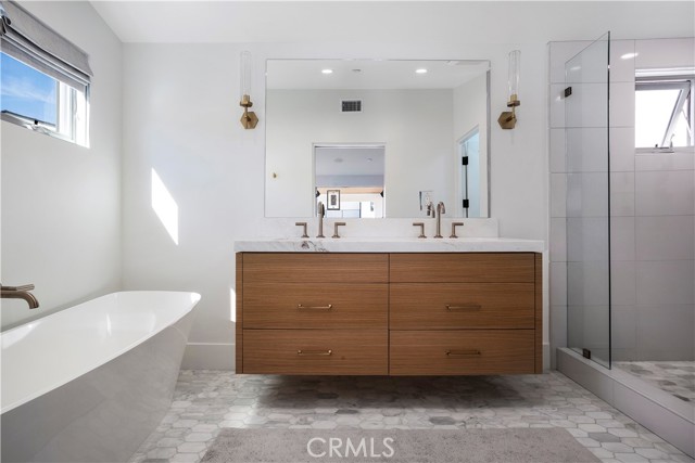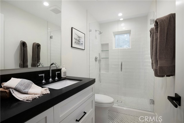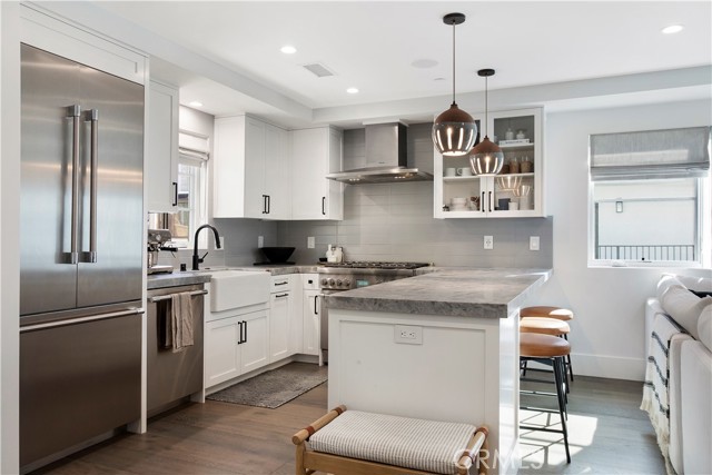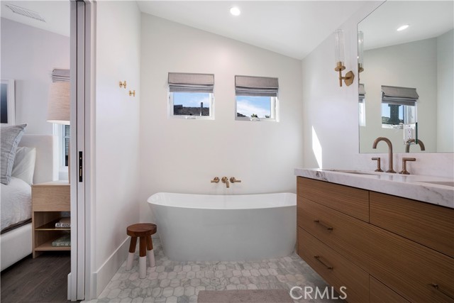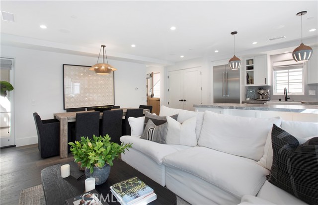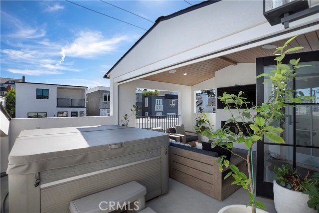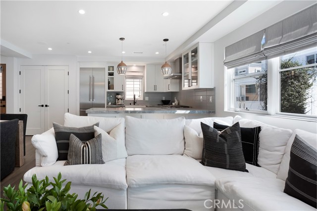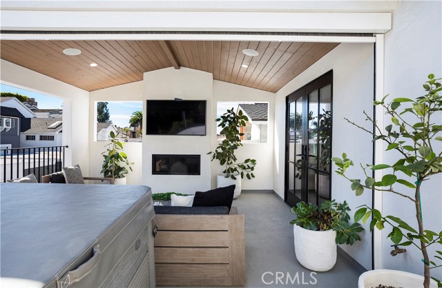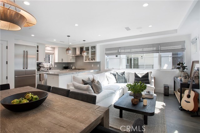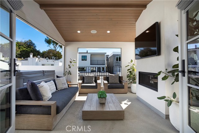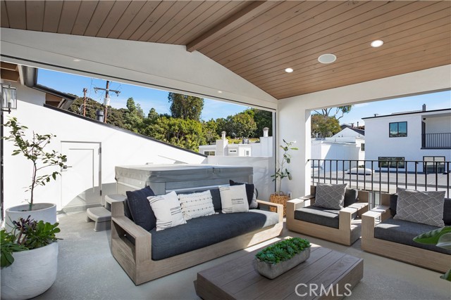 Situated at the end of Iris Avenue, this newer construction, two-bedroom, two-bath, approximately 1,200-square-foot rear home is not to be missed. Distinguished by a unique facet, this dwelling remains detached from the front home — a rarity within the enclave of Corona del Mar Village.rnrnThis custom unit is built by the boutique builder Sonil Construction and designed by Walz Architecture. Encompassing the primary floor are a secondary bedroom, a full bath, a kitchen, a living room, and a dining room, all coexisting harmoniously. The epicurean kitchen is a symphony of artistry and functionality, with artisanal cabinetry, soft-close drawers, and opulent hardware, all draped in resplendent quartzite slabs. A stainless-steel Thermador appliance package awaits the savviest of chefs.rnrnAscending to the second level, the luxurious master suite, an enclave of indulgence, is adorned with an expansive walk-in closet. In the master’s spa-like bath retreat, a Victoria + Albert freestanding tub and dual sinks atop rift white oak cabinetry are embellished with designer-selected light and plumbing fixtures.rnrnStep forth from the master suite to a haven of tranquility — the capacious, partially covered rooftop terrace is adorned with a jacuzzi and a fireplace, creating the perfect alfresco sanctuary. Commanding panoramic vistas of cityscapes and cradling mountains, this space is an idyllic stage for repose and gathering.rnrnHarmonizing technology with comfort, the residence is endowed with an integrated home audio system, with speakers throughout, and a meticulously designed security system. Situated in the desirable community of Corona del Mar, this home places you moments away from pristine beaches, renowned dining, upscale shopping, and vibrant local culture. Whether you seek an active lifestyle or a quiet escape, this home offers the best of both worlds. Don’t miss the opportunity to own this exceptional home where luxury living and natural beauty harmonize in perfect balance.