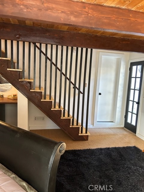 : Balcony, Beamed Ceilings, Living Room Deck Attached, 2 Staircases, Furnished