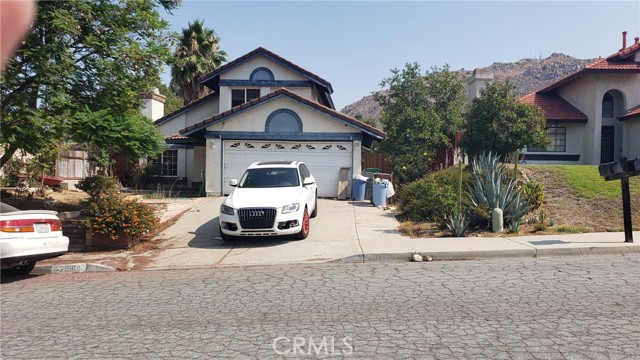 This 4 bedroom, 3 bath is set up for entertainment and ease of living. The family room / kitchen overlooks the rear patio area for great entertainment convenience. The front door entry opens into the living room area with tall ceilings and open stairway. 3 bedrooms are upstairs with 2 of the bathrooms. Down stairs has 4th bedroom. Low maintenance front yard and the back yard set up for entertainment with a full size patio, cabana, built-in BBQ, frig under counter. Two car garage and extra outside storage. Great Location. Close to shopping, parks and schools. Off the 60 freeway in Moreno Valley next to Riverside