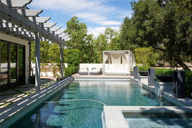 Discover the captivating elegance of this remarkable Zen Farmhouse, enhanced by over $1.3 million worth of designer upgrades, gracefully nestled on the largest lot, front row, within the gated sanctuary of The Oaks Farms. This exceptional residence seamlessly marries the allure of equestrian living with sophisticated design and top-tier security. Enveloped by the renowned horse training stables that frame the backdrop, this property is a true masterpiece. Passing through the gates of the driveway, an air of exclusivity and splendor welcomes you. The Zen Farmhouse aesthetic imparts a sense of serene tranquility, where every detail is thoughtfully orchestrated to inspire harmony and balance. Adjacent to the property lies the prestigious horse training stables, a realm of global acclaim. Immerse yourself in the equestrian world, whether as a spectator to these majestic creatures or an active participant in equestrian pursuits. The proximity of the stables adds an extraordinary dimension to your lifestyle, one that is both unique and exhilarating. Upon entering the farmhouse, a world of refined living unfolds. The interior showcases impeccable craftsmanship, a seamless flow of open and airy spaces drenched in natural light. Organic elements and thoughtful details create a harmonious connection between indoor and outdoor realms, further enhancing the serene atmosphere. The gourmet kitchen is a haven for culinary enthusiasts, boasting high-end appliances, generous counter space, and a central island that forms the nucleus of the home. Whether hosting intimate gatherings or crafting culinary delights, this space epitomizes both functionality and grace. Retire to the opulent bedrooms, each meticulously designed to offer a personal haven. These retreats prioritize both comfort and relaxation, inviting you to unwind and rejuvenate in style. The bathrooms exude spa-like luxury, adorned with high-end fixtures and finishes that elevate your daily routines. Outside, the enchantment continues with impeccably landscaped grounds and a seamless blend of nature and tranquility. Serene gardens, gentle water features, and inviting outdoor living spaces beckon you to connect with the world around you. Whether indulging in morning coffee in the courtyard or hosting memorable gatherings beneath the stars, these outdoor spaces offer a peaceful retreat in the heart of San Juan Capistrano. Don’t miss out on the chance to call this exquisite property your home!