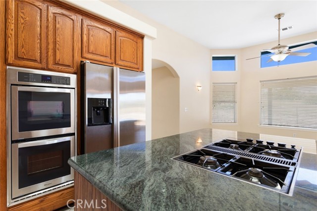 Beautiful & Charming Home in the Heart of Yucca Valley. Huge 3 Car attached garage direct access to the house. Featuring 3 Generous sized Bedrooms & 3 bathrooms, a detached 700 square feet casita with a big bedroom as well as a bonus room, full bath and kitchen, and a laundry room. an RV garage and is on almost 2.5 acres lot. This house comes with fully paid solar! Fully fenced property through the automatic gate A Formal Dining Room where you can view the backyard. Gourmet Kitchen with a Center Island featuring custom Cabinets, fine wooden cabinetry, a pantry for extra storage space and a gas stove, Granite Countertop, Sub Zero refrigerator & New Build-in Oven.