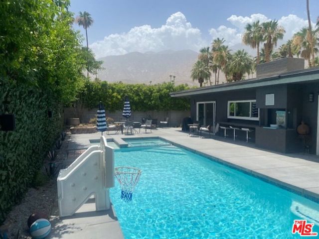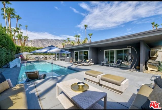 Reduced!!! Come see this Spectacular Mid-Century Pool Home in Historic Indian Canyons Neighborhood. FEE SIMPLE!!! No HOA!!!! Short term rental OK, This home offers 2 spacious bedrooms, 2 bathrooms, and a large bonus bedroom not in square footage. This house is very spacious and will captivate you with its unique style and design. The oversized living room features a gas fireplace, bar and dining room adjacent to the open kitchen all overlooking the pool. The spacious master suite has a large newly remodeled Roman tub, yet each bathroom offers a unique fun style. The outdoor living space of this home has also been recently re done, enjoy tanning on your tanning shelf in your large private pool, or soaking in the spacious jacuzzi. This is a large corner lot with beautiful mountain views and mature trees surrounding for maximum privacy. Will consider a Lease option!