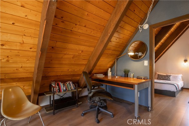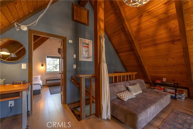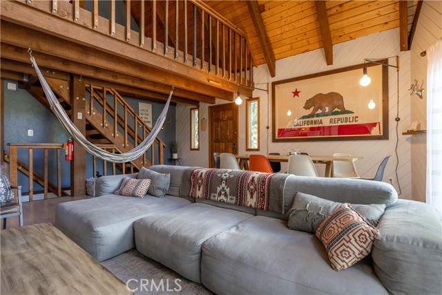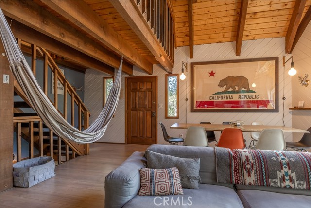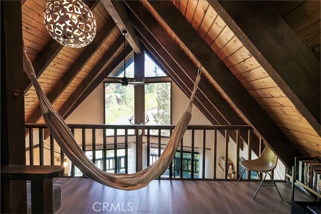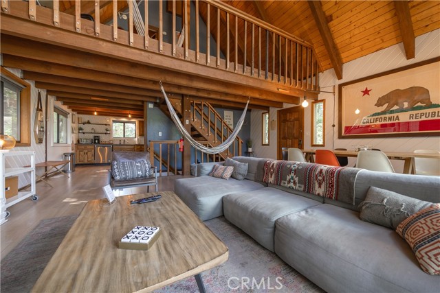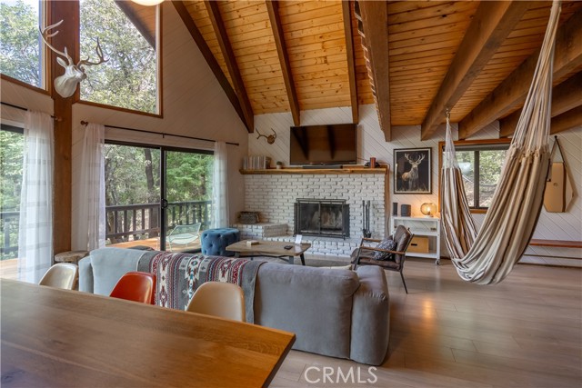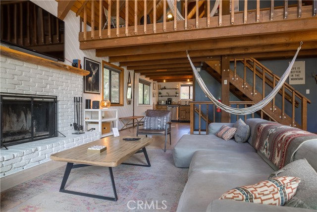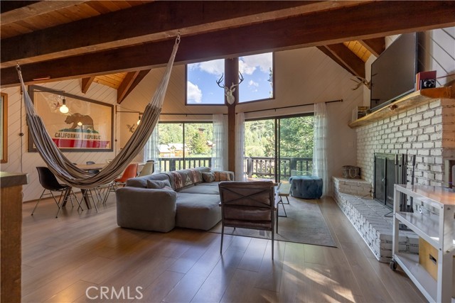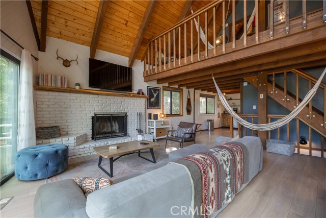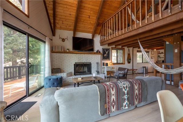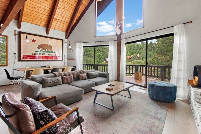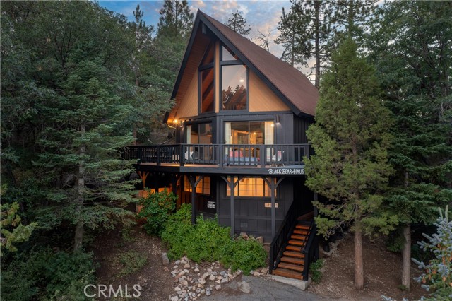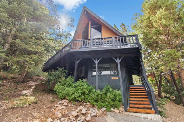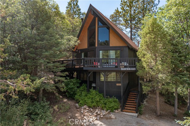 Escape to the charming Black Bear Haus Chalet nestled on a treed hillside in Moonridge! This charming 3 story chalet features 2 bedrooms, a loft and 1 full & ¾ bath. The main level features the ensuite master retreat. The second level is great for entertaining and features a dining area, updated kitchen which opens to the great room, a wood burning fireplace for those cold nights, vaulted open beam ceiling, soaring floor to ceiling windows inviting natural light and the views indoors. The third level features the second bedroom and a versatile open loft overlooking the great room with amazing views. Relax and enjoy the majestic treed setting from the front deck with room for outdoor dining, entertaining or stargazing. Embrace the ultimate mountain lifestyle close to Bear Mountain Ski Resort and Golf Course, Zoo, hiking and biking trails and just a short drive to Snow Summit Ski Resort, lake, Village for restaurants, shopping and entertainment! You will fall in love with this mountain retreat! Don’t miss your chance to make this property yours!