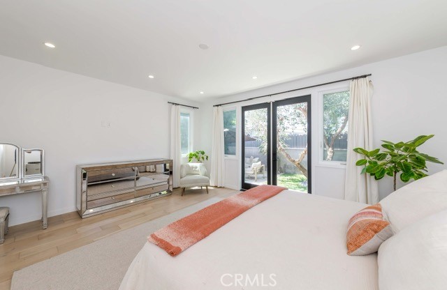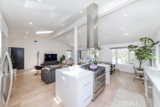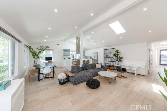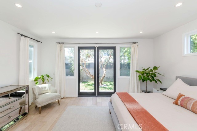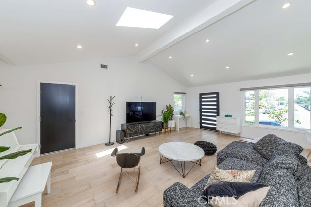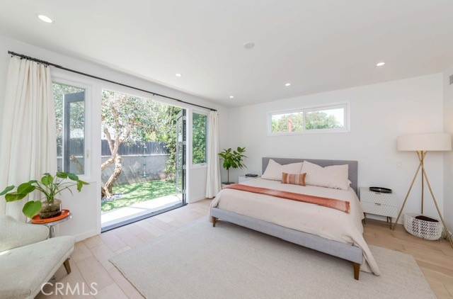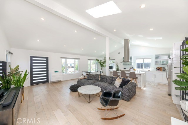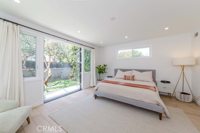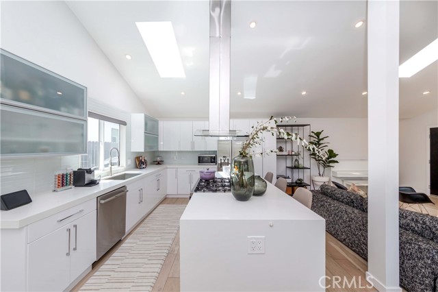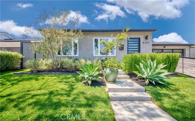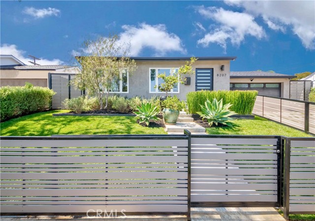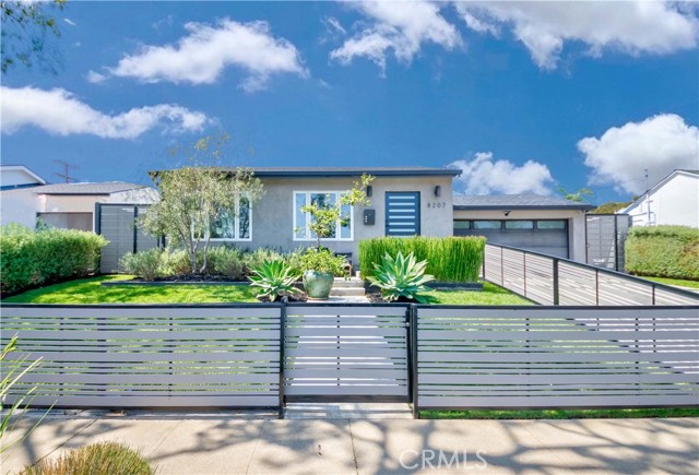 Magnificent! Newly remodeled in 2017, expanded 2,099 sq. ft. one-story modern-style home located in a prime family and friendly neighborhood of Westchester. Open floor plan, 4 bedrooms, 2.5 bathrooms & a large vaulted great room with skylights, featuring a gourmet kitchen with Quartz counters, glass tile back-splash, custom white gloss cabinetry with frosted glass, a large center island w/ seating, Bertazzoni Italian 36″ gas range w/ strong convection oven, Bosch silent dishwasher, and new Kohler turbo spray nozzle kitchen faucet. Light & bright, home features new frosted glass interior solid wood doors, new dual-pane windows, skylights, wide-plank engineered wood floors, central HVAC with Nest thermostat, updated copper plumbing, updated electrical & smooth-coated exterior stucco. Private master bedroom suite has high ceilings, a walk-in closet with code entry lock and 2 code entry safes, & a spacious master bathroom with separate shower & free standing soaking tub, double sinks with Kelly Wearstler designer lights fixtures, and separate toilet room. All bathrooms feature floating vanities, modern tile & chrome fixtures. Master and two bedrooms have French doors that lead directly out to a charming & newly landscaped lush back yard. Separate laundry room with stacked LG washer and dryer included and sink in laundry room. Attached two car finished garage can be used as office/playroom and has 220 volt junction box for an EV charger. Additional driveway parking. Side gate has code entry lock. Front yard has a gate for safety and privacy along with 15 year old olive tree. Ring security system with 6 cameras and porch light controls.