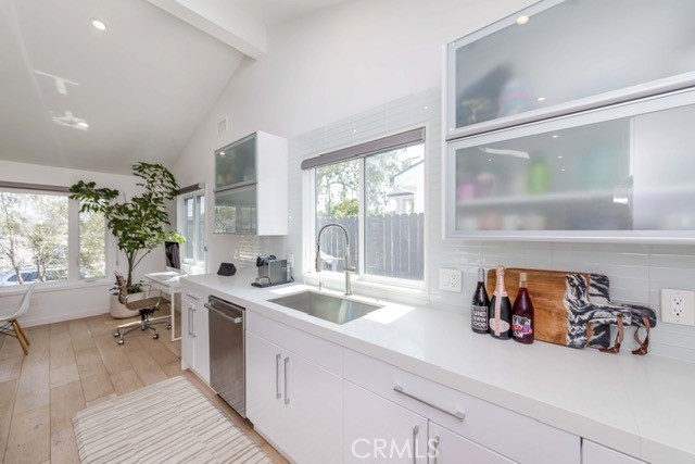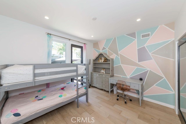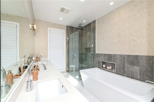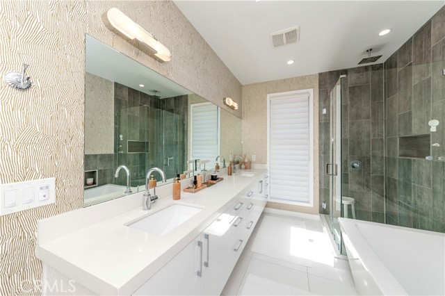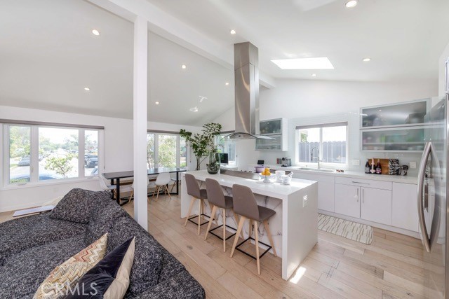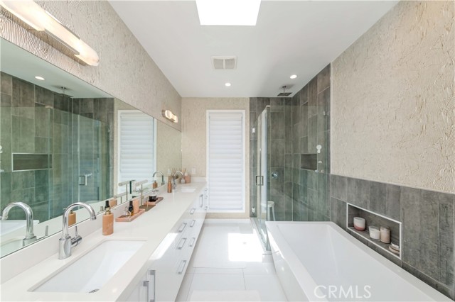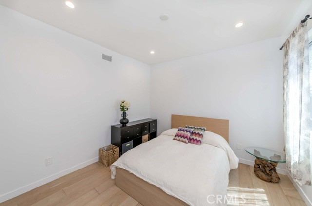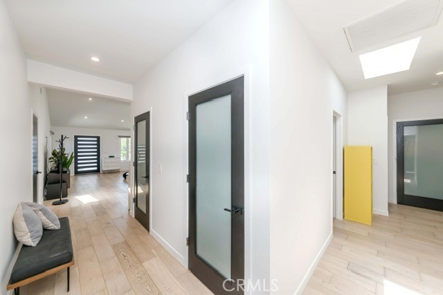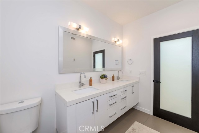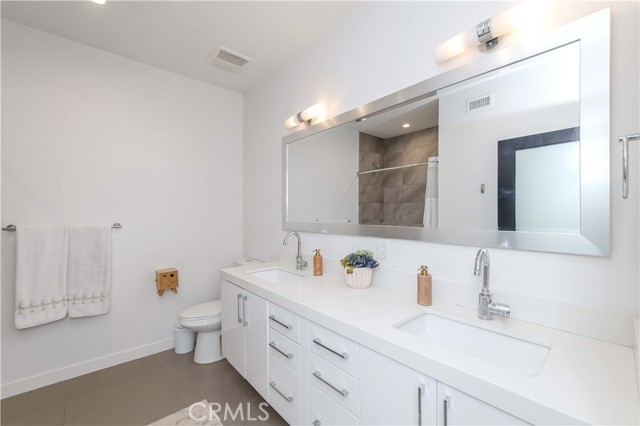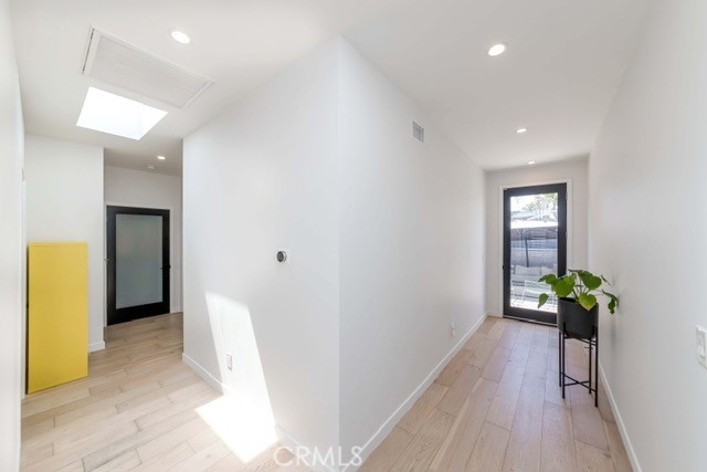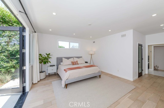 Magnificent! Newly remodeled in 2017, expanded 2,099 sq. ft. one-story modern-style home located in a prime family and friendly neighborhood of Westchester. Open floor plan, 4 bedrooms, 2.5 bathrooms & a large vaulted great room with skylights, featuring a gourmet kitchen with Quartz counters, glass tile back-splash, custom white gloss cabinetry with frosted glass, a large center island w/ seating, Bertazzoni Italian 36″ gas range w/ strong convection oven, Bosch silent dishwasher, and new Kohler turbo spray nozzle kitchen faucet. Light & bright, home features new frosted glass interior solid wood doors, new dual-pane windows, skylights, wide-plank engineered wood floors, central HVAC with Nest thermostat, updated copper plumbing, updated electrical & smooth-coated exterior stucco. Private master bedroom suite has high ceilings, a walk-in closet with code entry lock and 2 code entry safes, & a spacious master bathroom with separate shower & free standing soaking tub, double sinks with Kelly Wearstler designer lights fixtures, and separate toilet room. All bathrooms feature floating vanities, modern tile & chrome fixtures. Master and two bedrooms have French doors that lead directly out to a charming & newly landscaped lush back yard. Separate laundry room with stacked LG washer and dryer included and sink in laundry room. Attached two car finished garage can be used as office/playroom and has 220 volt junction box for an EV charger. Additional driveway parking. Side gate has code entry lock. Front yard has a gate for safety and privacy along with 15 year old olive tree. Ring security system with 6 cameras and porch light controls.