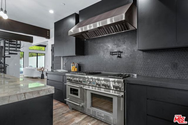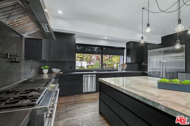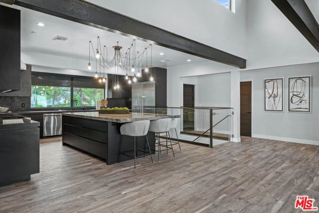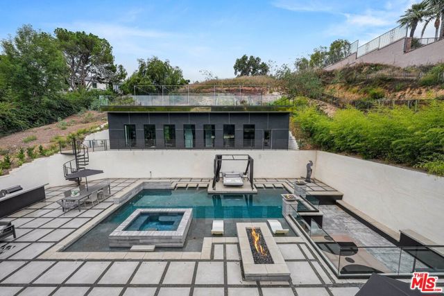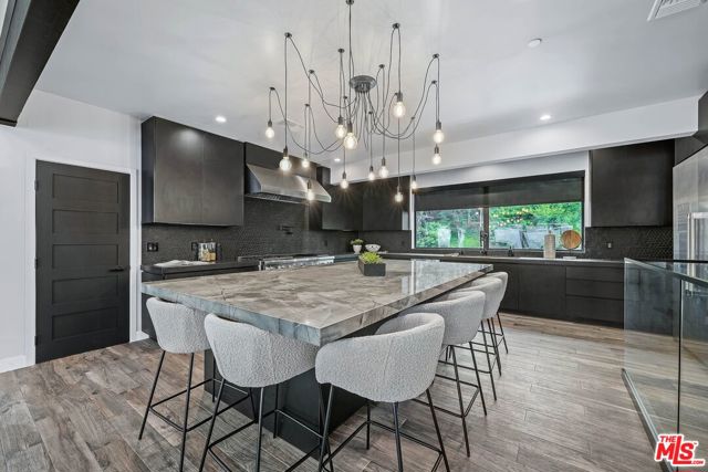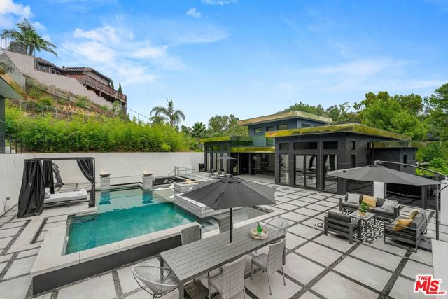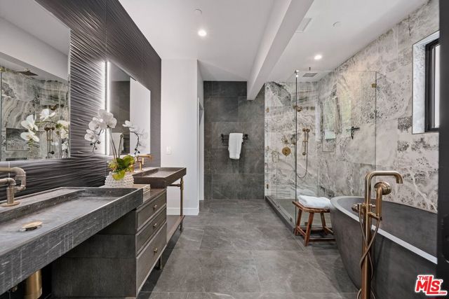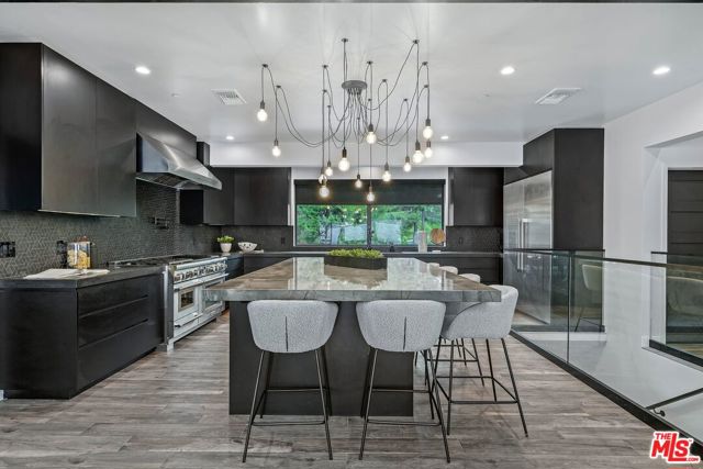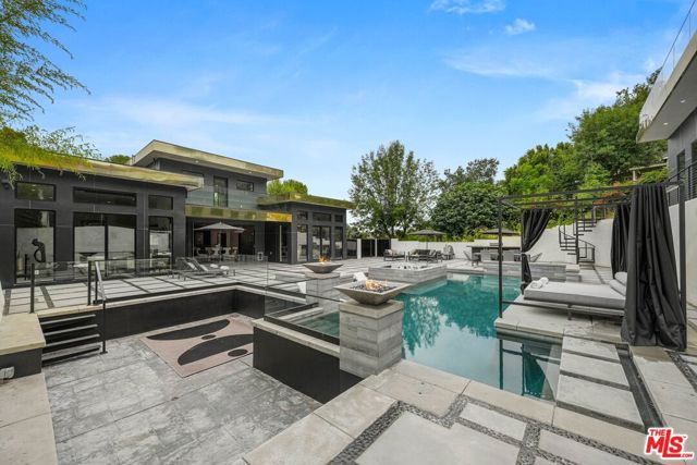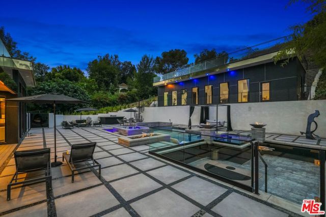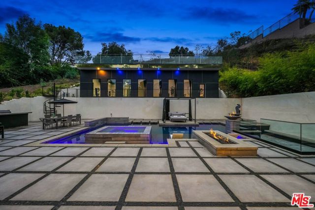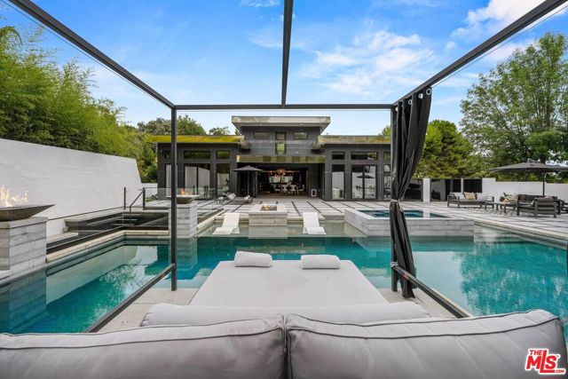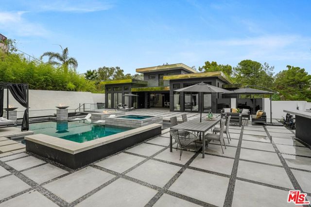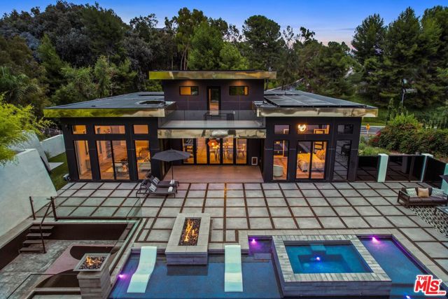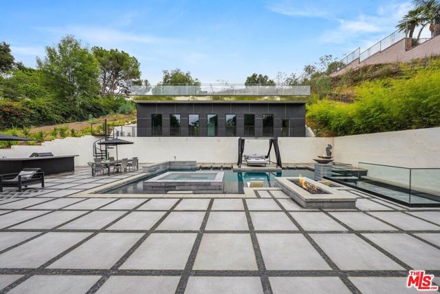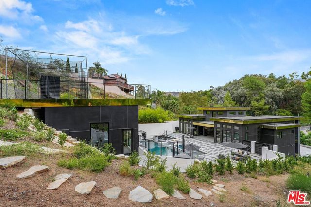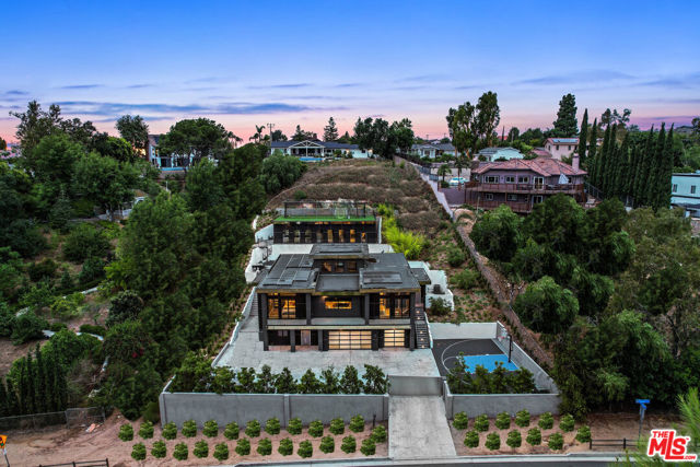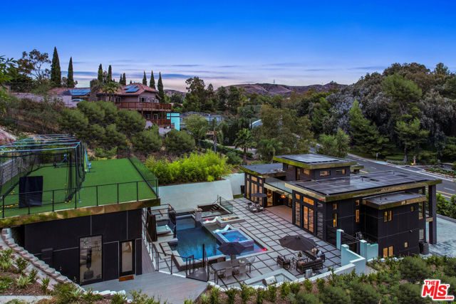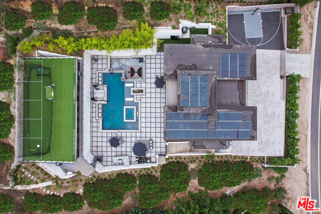 Nestled within the prestigious Villa Park community, discover this newly built contemporary masterpiece designed for ultimate entertainment and luxury living. This two-story residence, bathed in natural light thanks to its soaring ceilings and open floor plan, offers a total of 4 bedrooms and 6 baths, as well as a spacious office that adds an element of functionality to this elegant home. At the heart of this residence lies the chef’s kitchen, featuring an oversized quartz-topped island, a 60-inch range oven, and a Thermador oversized refrigerator. The main living area, designed for quintessential California indoor-outdoor living, welcomes the outdoors in with accordion sliding glass doors leading to a sprawling yard. The primary suite, with its floor-to-ceiling built-in closet storage and electric shades, connects effortlessly to the outdoor oasis. Here, you’ll find a saltwater pool, spa, an overflowing baja pool, three inviting firepits, a sunken seating area, and a fully equipped BBQ island with a fridge and sink. An astroturf side yard with batting cage/sports field and a basketball court complete this outdoor haven. Beyond the main residence, you will find a separate guest house spanning over 1,100 square feet with its own rooftop astroturf area and set of amenities. It boasts a fully equipped gym and an office/guest area, complete with a full kitchen and bath. The three-car garage is not only equipped with a large walk-in safe but also features an additional storage room and a 220-voltage electric car charger. Throughout the home, custom cabinets by Derrick Wayne and ceramic floors showcase intricate craftsmanship. Every corner exudes opulence, from the massive stone tub to the exquisite master sinks with a vanity, and the upscale plumbing fixtures. Additional features include two tankless gas water heaters ensuring uninterrupted hot water, a robust 2-inch water line for excellent water pressure, and automatic blinds in the master suite and high windows. Indulge in the epitome of luxury living and entertainment at this Villa Park gem, where no detail has been spared in creating a haven of unparalleled sophistication and comfort.