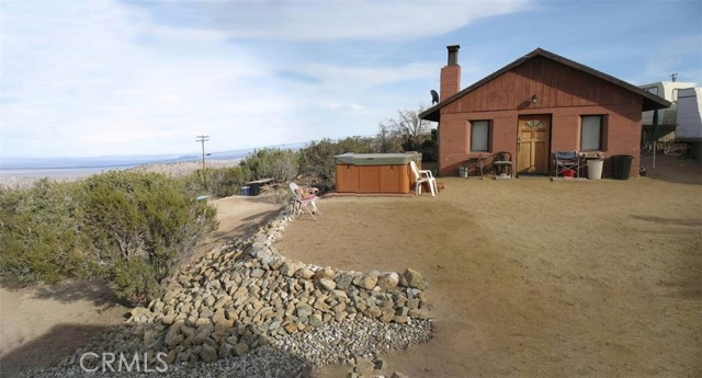 Awesome, spectacular views from 4,635-foot elevation, with the majestic boulders of Devil’s Punchbowl to the east and the rnmighty San Gabriel’s towering above in the south. Yes, see the VIRTUAL TOUR tour of this million-dollar view of the high rndesert: view, view, view, what some buyers put at the very top of their list, because awe-inspiring serenity is key to the soul.rnand creativity — one truly can’t put a price on it. Also: original cement cabin, separate panel for RV hookup, roughly 3-gallon-rnper-minute well, 10,000-gallon water tank, and fenced 5 acres. Separate fenced animal enclosure. Needs bathroom, there is none, but there is a septic tank.