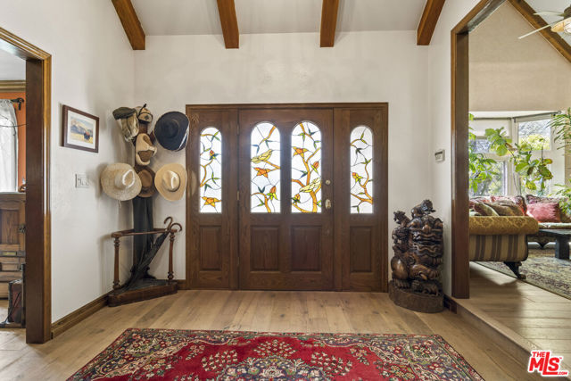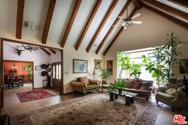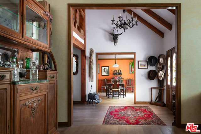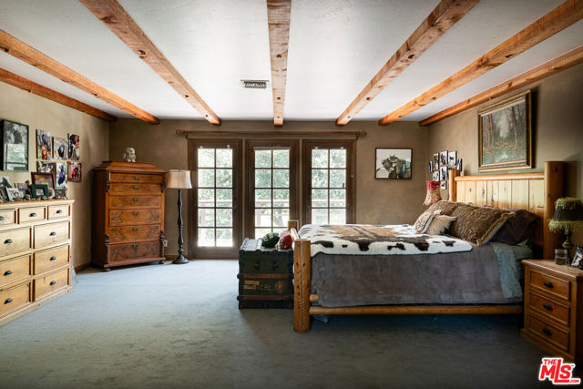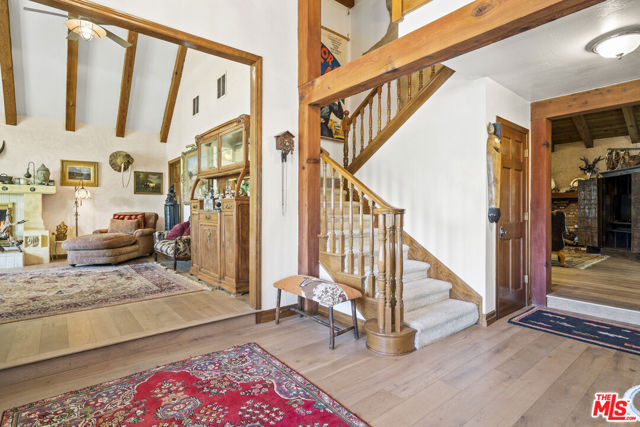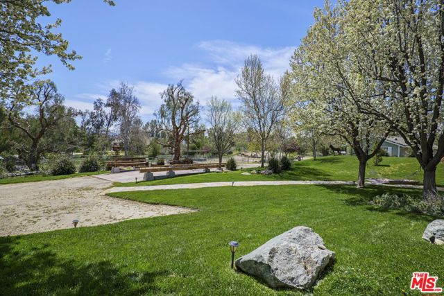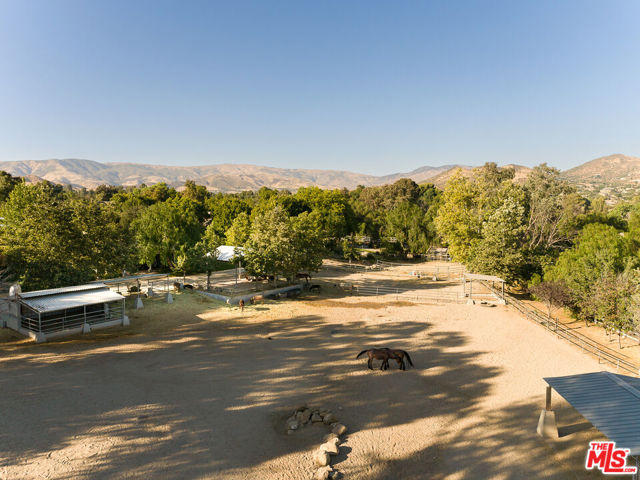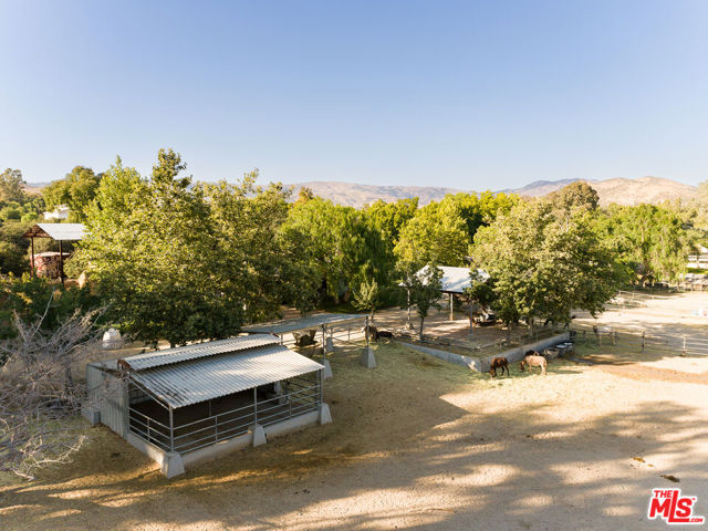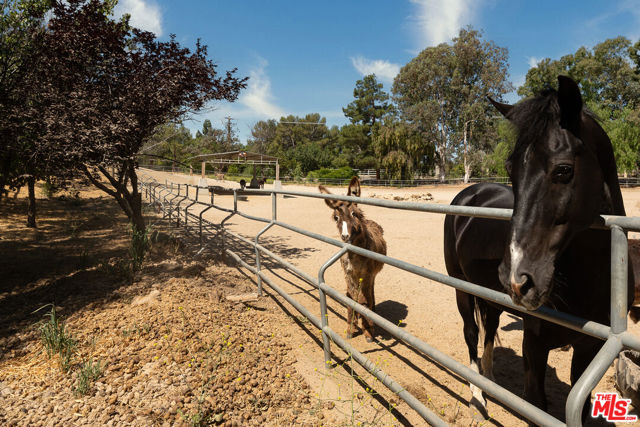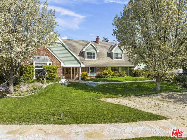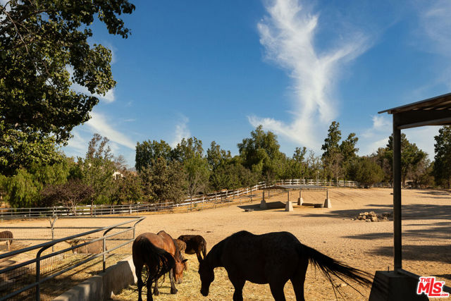 Next to Vasquez Rocks in Aqua Dulce sits a beautiful 5 acre equestrian property. This dream ranch location is perfect for your own family, horses and donkeys. This property boasts a premiere 1 acre horse paddock, connecting round pen, 2-stall gentleman’s barn, a “mare motel” birthing barn and enough hay storage for 500 bales. The 480 foot deep well produces 18 GPM. Along with 4.9 acres of land, there is a 3,000sqft raised garden bed with a drip irrigation system, an 8000-gallon water tank with your own fire hydrant and the entire property is irrigated. This ranch has two main gated entry points in and out and a third one for RV parking. There are multiple sheds on the property. This amazing ranch has an orchard filled with apple, pear, peach, plum, apricot, fig, pomegranate, persimmon, Armenian apricot and 6 mature table grape vines. There is an assortment other trees including Eucalyptus, Pine, Pepper, Fruitless Pear and Fruitless Mulberry. In addition, there is an ancient grove of California scrub oaks, some dating back 200 years. The sweeping entryway of this 4,691 sqft house sets a dramatic tone for this warm, rustic western home which features 5 bedrooms and 3 and baths. The large master-suite includes a sitting room with its own fireplace, his and her vanities, a cedar sauna and large walk-in closet. The split-level upstairs features two generous bedrooms with a Jack and Jill bathroom. The other two remaining bedrooms are downstairs. The living room is massive and boasts a beautiful fireplace and a vaulted beamed ceiling. The 8000 book library/ family room also has a vaulted beamed ceiling as well as a large fireplace and a gentleman’s bar. The formal dining room with French doors and tile floor is ready for every occasion. Though very private, this property is conveniently located close to the following: prestigious iLead Agua Dulce Charter school is essentially across the street. High Desert Middle School and Mission Academy are all within 7 miles. Vasquez High School is less than 6 miles away. Canyon High School is less than 10 miles away. Acton Market or Von’s are both 10 miles away. The Sand Canyon Country Club, a premiere golf course, is 10 miles away. Sweetwater Veterinary Clinic is less than a mile away. One of the best local hospitals, Henry Mayo Hospital is approximately 18 miles away.