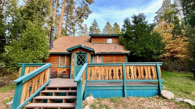 This cozy and adorable treasure on Lilac Dr. has charm & class and sits just 1 mile from downtown Idyllwild. Enter, among the picturesque woodland trees and wildflowers, through the large driveway. Be greeted by a large, sun-drenched front deck, into a cozy and comfortable floor plan, featuring cathedral and beamed ceilings, pine wainscoting, cedar paneling, and tranquil light throughout.rnrnThe living room is anchored by a large, corner brick fireplace and hearth. The updated kitchen is complete with newer cabinetry, quartz counters and stainless appliances. Dining area opens to the private patio, with brick accents and sitting areas -perfect for al fresco dining, entertaining, and tranquil relaxation. This home has both a large front porch and a large back patio for dining and relaxing by the outdoor brick fireplace/grill. The large driveway allows several parking spaces. Additionally, there is a large in-home washer and dryer and a convenient, half-bathroom located on the first floor.rnrnProperty is being sold “AS-IS”rnrnThe upper level is comprised of both bedrooms, one of which features a full, en suite bathroom with double-sink vanity and quartz counters. This desirable mountain property is only 3 mins. from town center and awaits you. rnrnHiking, walking the town, sightseeing, visiting the nearby lakes, dining, enjoying the snow or enjoying quiet time are just a few pastimes you will experience at The Lilac in Idyllwild/Pine Cove. rnrnJust about an hour away from Palm Spring and Palm Desert, CA.