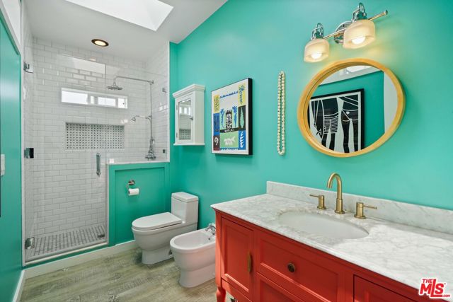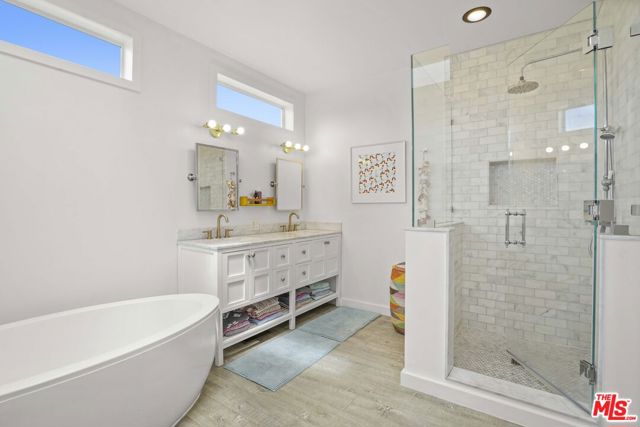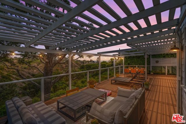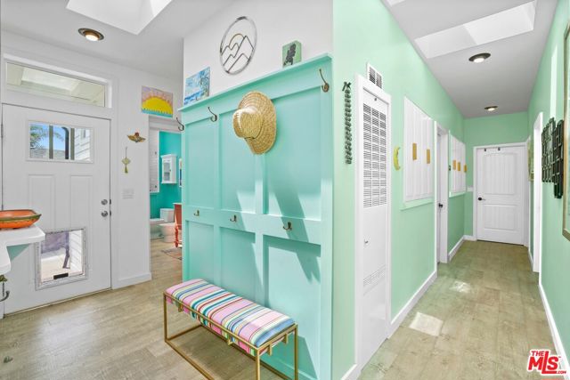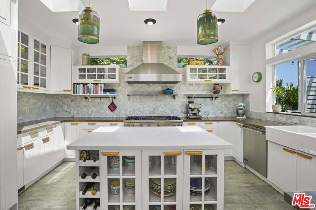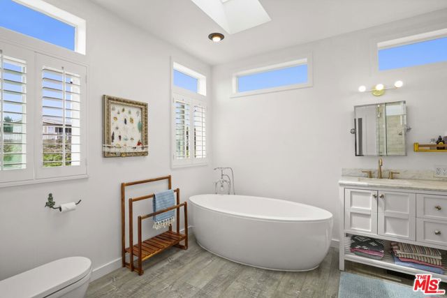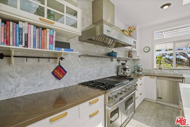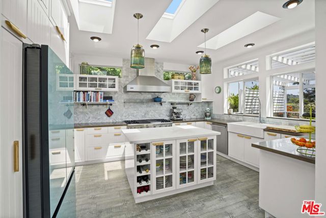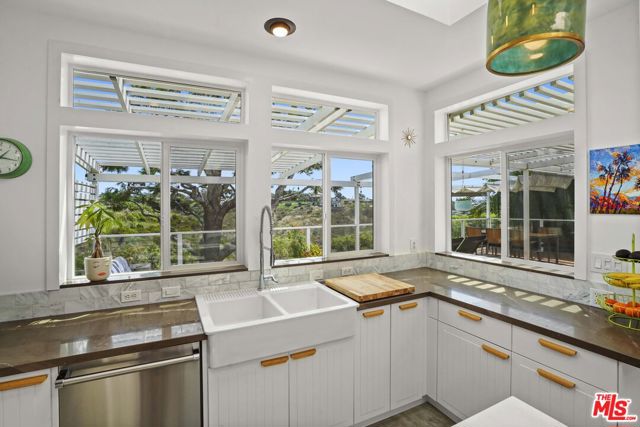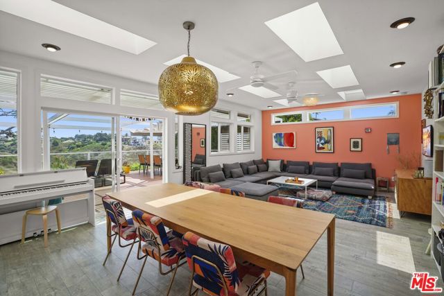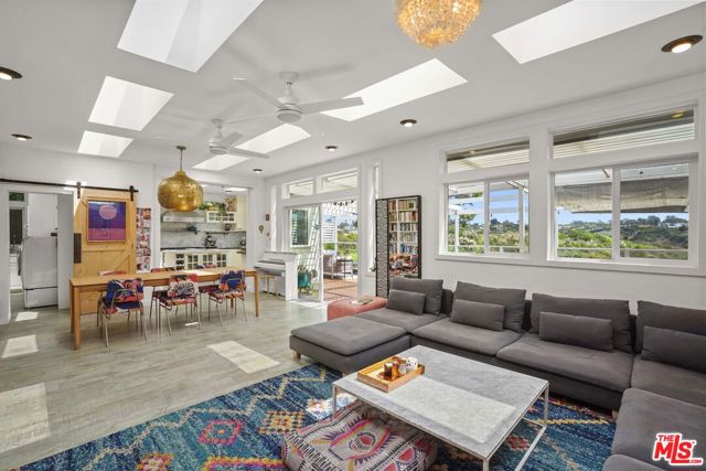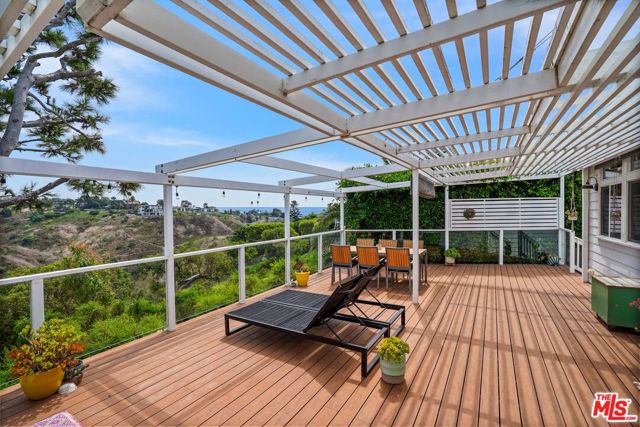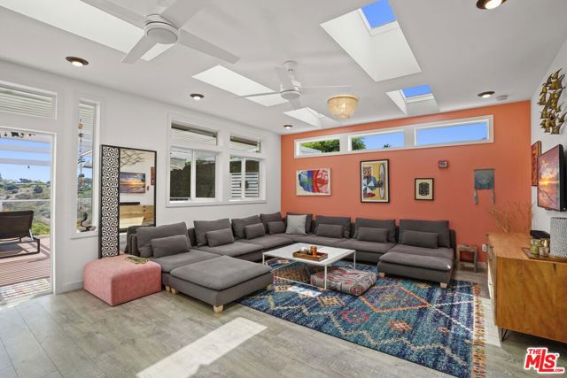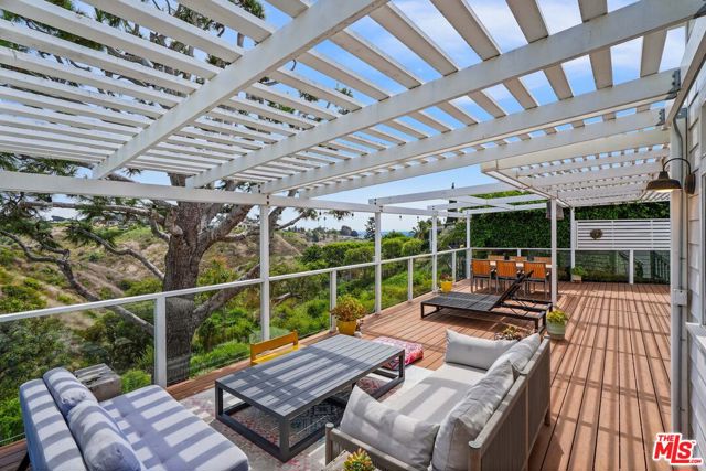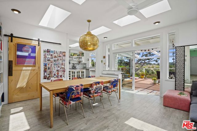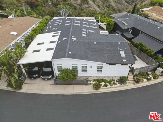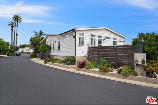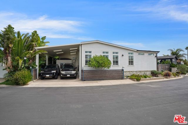This spectacular home is one of the largest in the park offering 4 bedrooms, 3 baths and over 2200 sq ft of living space. Situated on a highly desirable street this home boasts stunning canyon views from kitchen, living and dining room. The open floor plan is filled with natural light, high ceilings, and skylights throughout. The kitchen is a highlight, featuring a Carrara marble island, stone countertops, energy-efficient appliances, high-end Viking range and dishwasher. Great living room and dining area all leading to a fantastic outdoor space with an oversized deck that offers breathtaking canyon and ocean view, plus a side patio with a garden area, and ping pong table. All bedrooms are nicely sized, with fans, custom closets and wood shutters. The spacious primary bedroom has two walk-in closets with barn doors, ensuite bathroom is beautifully designed with double sinks, a Carrara marble vanity, a free-standing tub, a shower, and a bidet. For added security and privacy, the house is completely gated with a Mangaris wood fence. The home also features a great laundry room with sink plus added storage, and a LifeSource water filtration system for the entire house. Two car side-by-side parking spaces and a large storage shed, currently used as a stunning office space. With close proximity to guest parking, basketball and tennis court. The community amenities are extensive and include; a community pool, spa, sauna, tennis & basketball court, playground, dog run, clubhouse, and billiards room. The community is also guarded 24 hours a day, ensuring safety and peace of mind. Only a short walk, bike or golf cart to the local schools, shopping center and Zuma beach. This home is a must see!